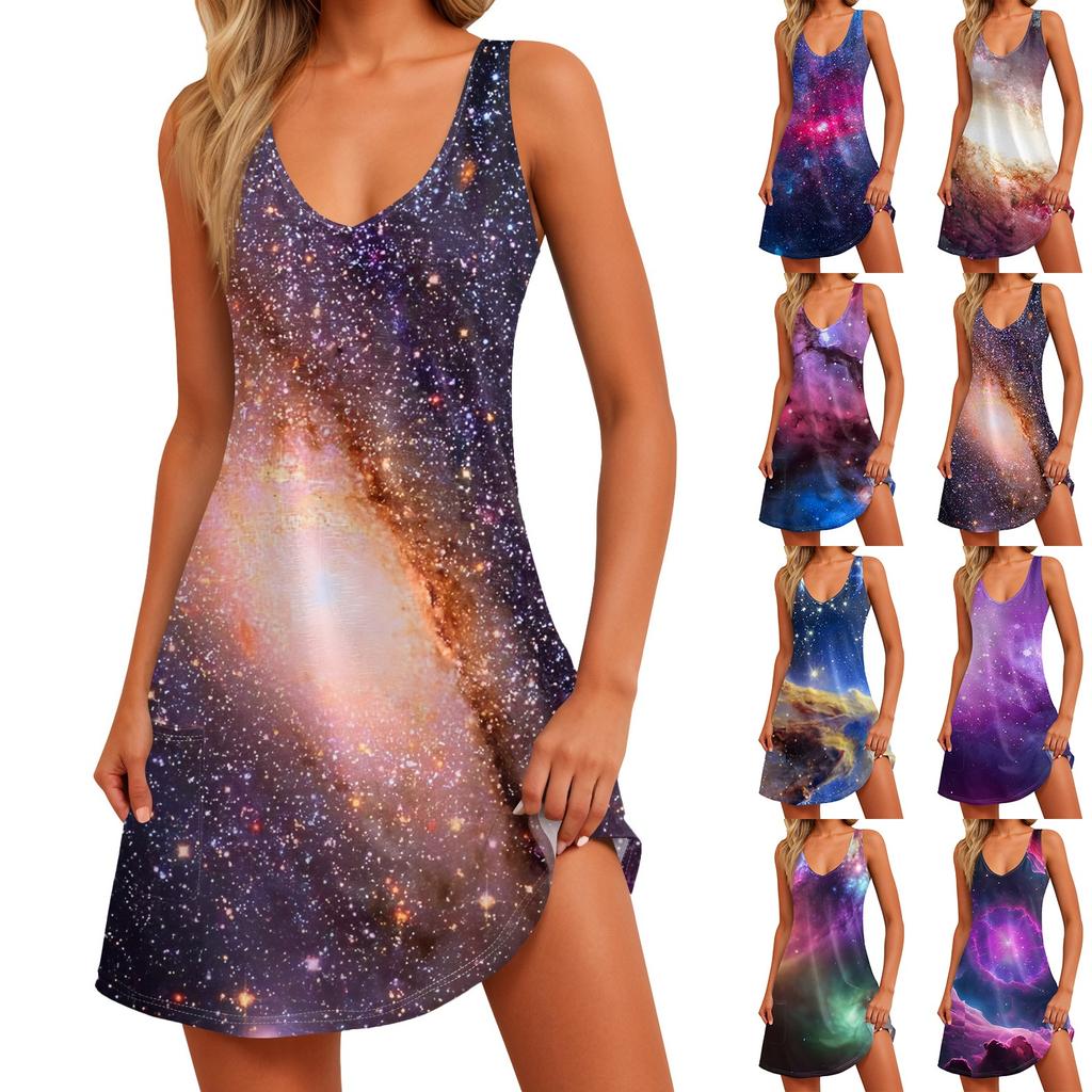 Женское летнее повседневное свободное платье без рукавов с цветочным принтом и карманом