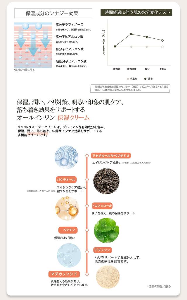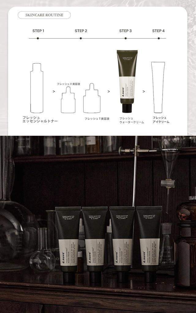 Fresh Water Cream от d.nuvo — увлажняющий крем, содержащий 8 видов гиалуроновой кислоты и раффинозу.. Рафиноза, полученная из корнеплодов свеклы, предотвращает испарение воды из кожи и сохраняет ее увлажненной.. Пять типов церамидов поддерживают защитные функции кожи, а кальций PCA сохраняет кожу здоровой.. Формула щадящая для чувствительной кожи, продукт веганский и экологически чистый.. Предотвращает проблемы с кожей, вызванные сухостью, и рекомендуется для ежедневного увлажняющего ухода и натурального ухода за кожей.. Высокоувлажняющий и увлажняющий крем на водной основе для тех, кто ищет простую, устойчивую и чистую красоту.. [Торговая марка] крем d.nuvo fresh water [Содержимое] 80 мл [Все ингредиенты] Вода, глицерин, BG, ниацинамид, биосахаридная камедь-1, полипропилсилсесквиоксан, пентаэритритилтетраэтилгексаноат, экстракт кожуры мандарина, масло семян теобромы крупноцветковой, пентиленгликоль, мадекассозид, глицерилполиакрилат, пантенол, раффиноза, (гидроксиэтилакрилат/акрилоилдиметилтаурин натрия) сополимер,