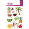 12 stickers 3D Tropical 5,5 cm + 20 étiquettes kraft Fanion