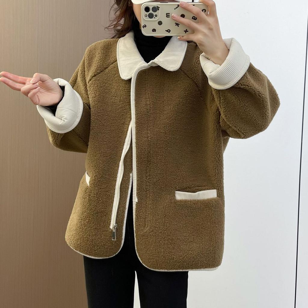 Женская и зимняя куртка из овечьей шерсти с контрастными лацканами, модный свободный повседневный короткий цельный топ — купить товар онлайн с бесплатной доставкой по всему миру!