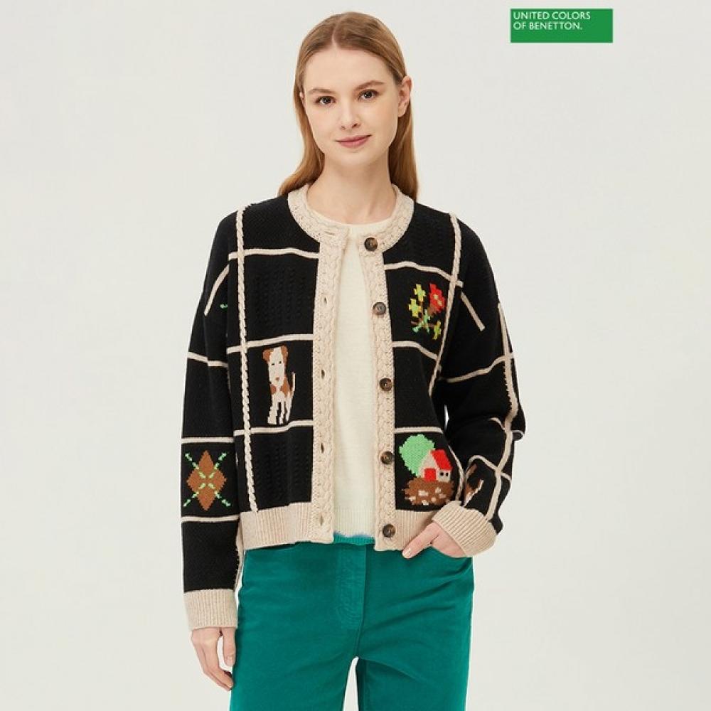 Benetton Кардиган вязаный Benetton с кабельным узором интарсия и круглым вырезом Bakca2511