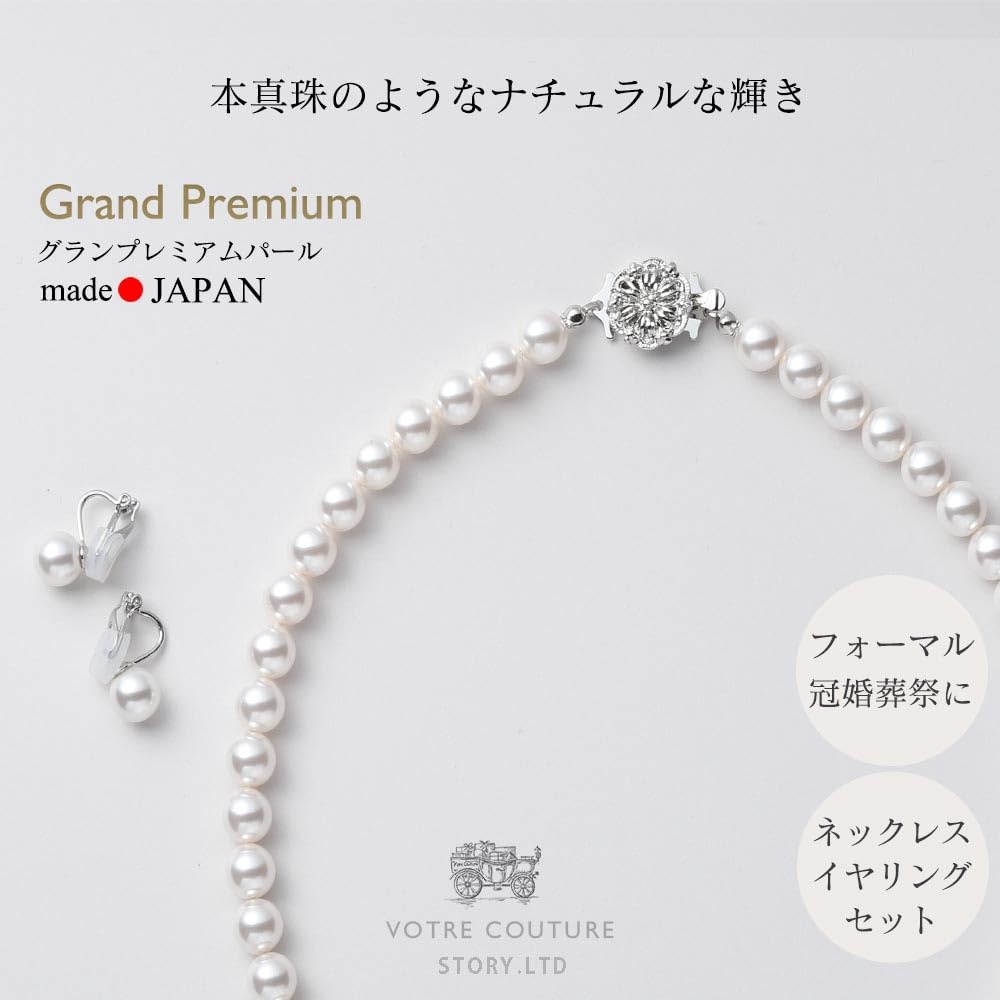 [Страна происхождения: Япония] Размер (ок.)/Ожерелье: 42см (стандартный размер), Серьги: Высота 1,8 см x Ширина 1,1 см, Жемчуг: 8мм Материал/Ювелирные изделия: Гранд Премиум Перл (Кристаллический жемчуг), Застежка-ожерелье: Латунь (Родиевые покрытие) Листовая пружина для легкого снятия. Серьги: Мягкий зажим, который не причиняет вреда даже при длительном ношении.