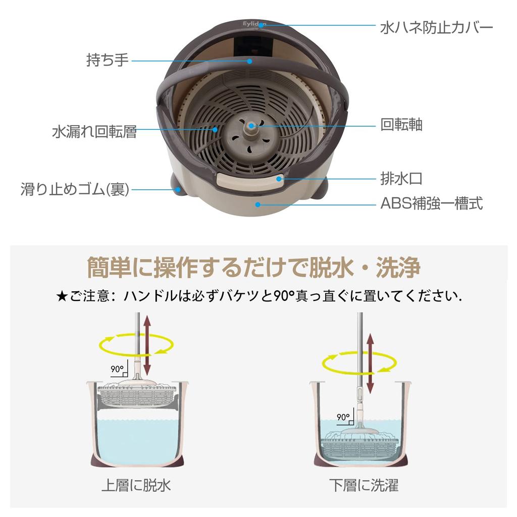 [Хороший дизайн]: Длину ручки можно отрегулировать с помощью пряжки в зависимости от пользователя и зоны уборки, поэтому вы можете легко пользоваться ею, не сгибая спину слишком сильно.. Ведро можно разобрать и вымыть дно.