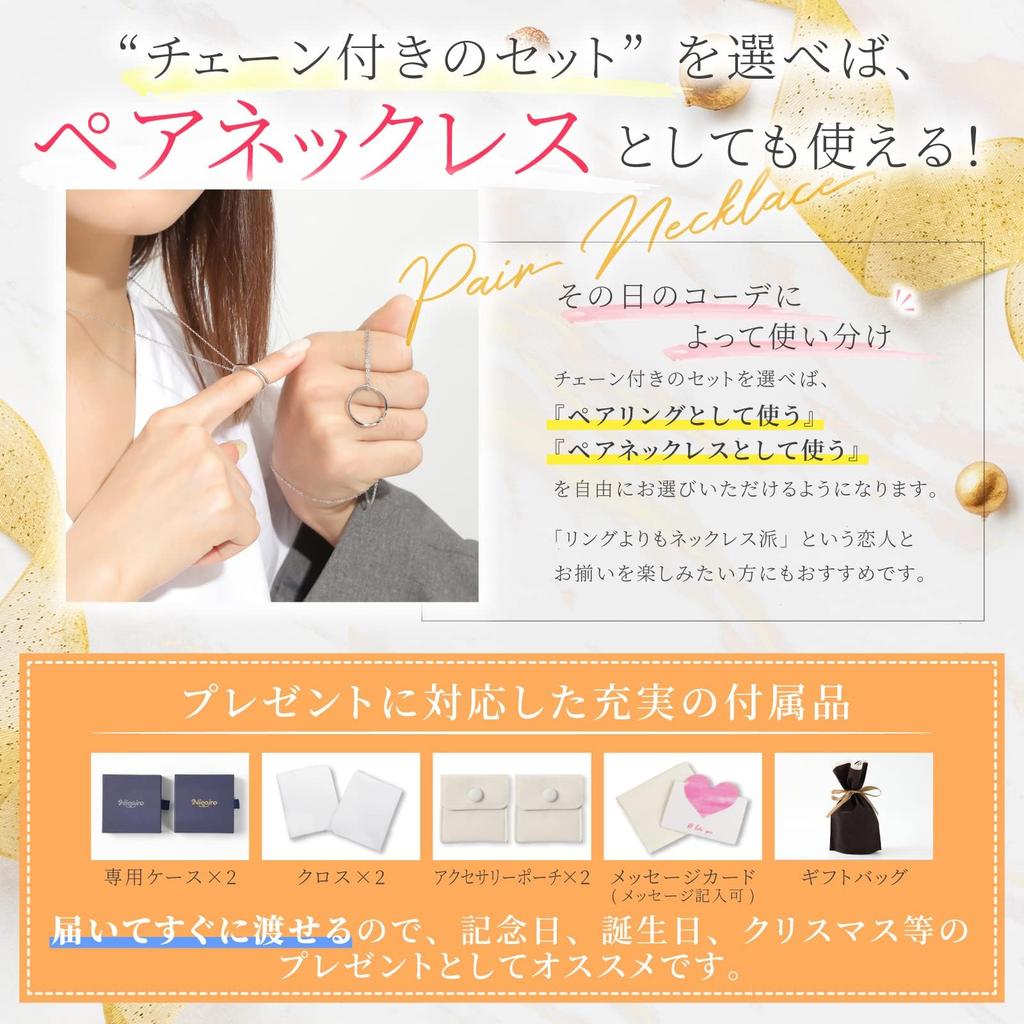 [Можно также использовать как парное ожерелье] Если вы выберете комплект с цепочкой, вы можете использовать парное кольцо как парное ожерелье! Рекомендуется парам, которые предпочитают парные ожерелья кольцам и хотели бы подобрать подходящую пару.