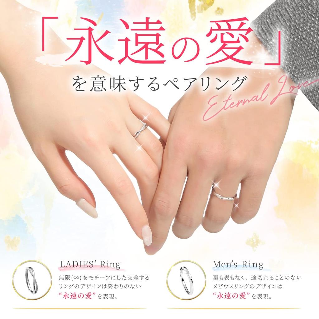 [Сочетание, означающее «вечная любовь»] Каждое кольцо создано с мотивом вечной любви.. Мужское кольцо выражает «вечную любовь» с мотивом непрерывного кольца Мёбиуса без передней и задней части.. Женское кольцо имеет дизайн пересекающихся колец с мотивом бесконечности, выражающим бесконечную «вечную любовь». Это кольцо идеально подходит для создания соответствующего образа.