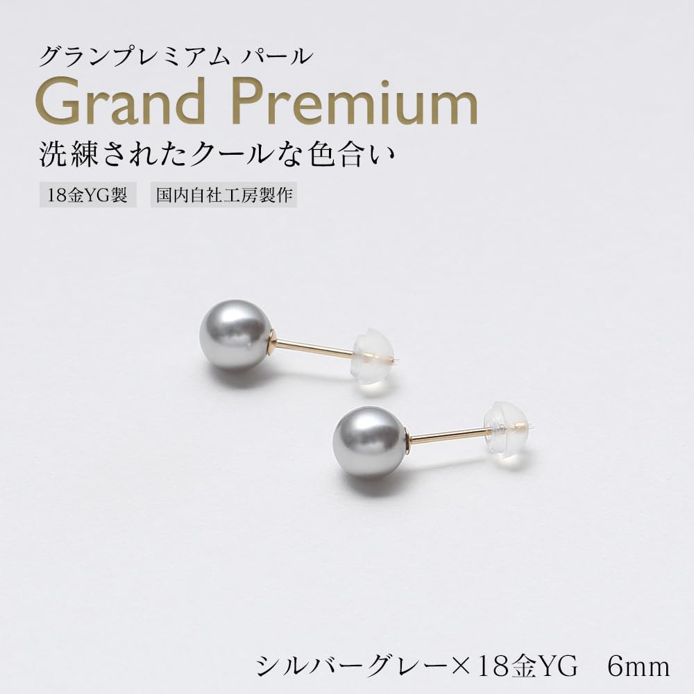 Серьги с жемчугом Цвет жемчуга K18YG 4 цвета на выбор Жемчуг 6 мм Серебристо-серый Золотой Гарантия 3 года