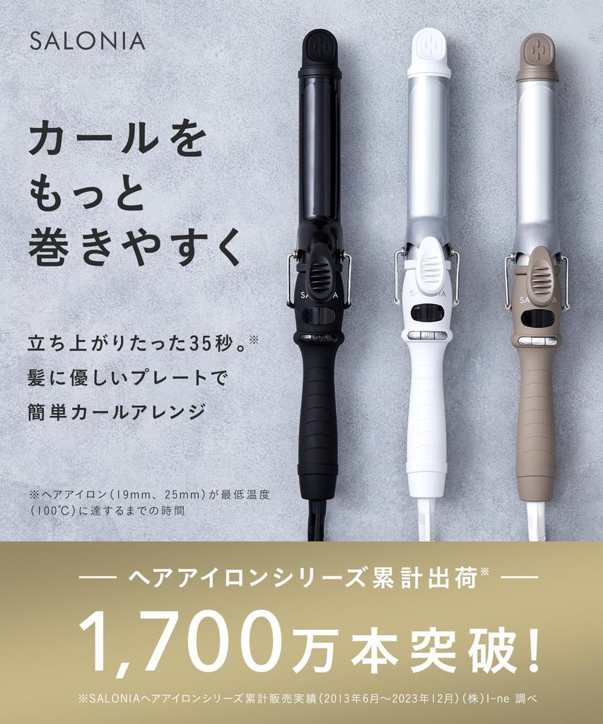 SALONIA Ceramic Curl Hair Iron 25mm Overseas Compatible with Heat Resistant Pouch Beige SL-008BE