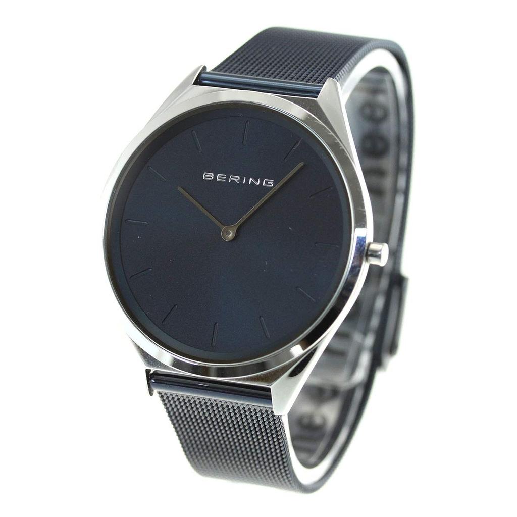 BERING Аналоговые кварцевые ультратонкие коллекционные часы с ремешком из нержавеющей стали, сапфировым стеклом, синим сетчатым ремнем, обычный импортный продукт, 3 года внутренней гарантии