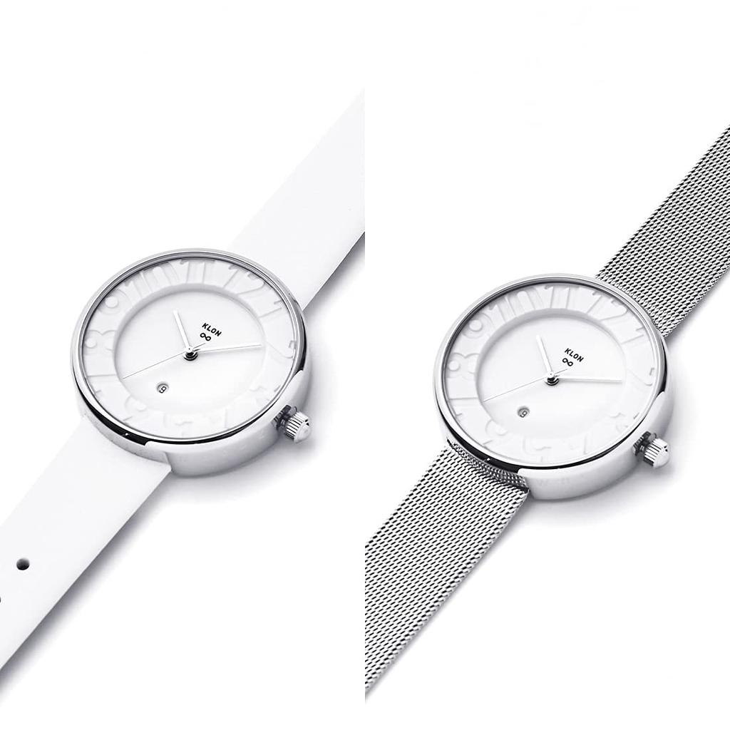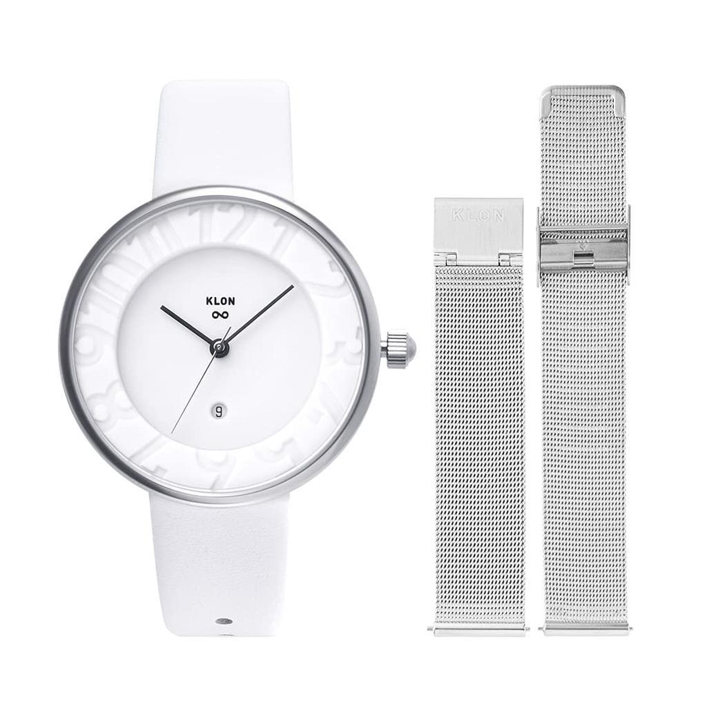 Комплект сменных ремешков для часов 2way Белый Серебряный Популярный Бренд Стильный Кожаный 36 мм KLON INFINITY STAIR серия Мужские Женские -STANDARD- [36/W-FACE]
