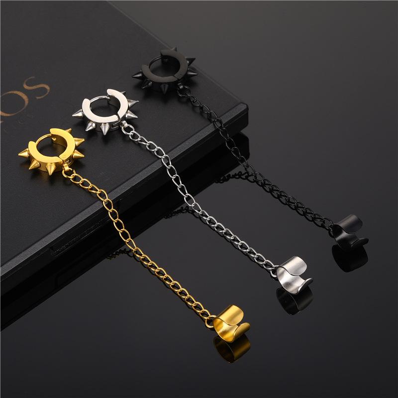 Дизайнерские серьги с заклепками в стиле панк, длинные цепочки, украшения для вечеринок, серьги-клипсы из нержавеющей стали, висячие серьги, подарки для друзей