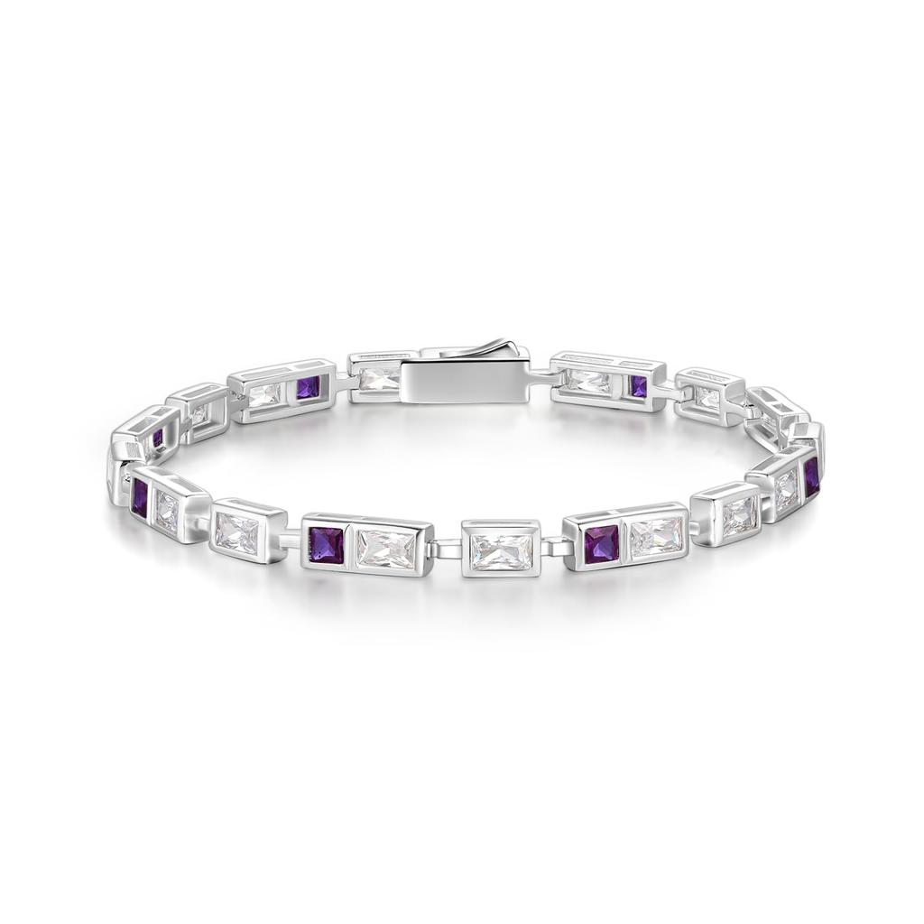 [Характеристики] Синтетика (искусственный) аметист х 9 камней / Размер: (ок.) 3 x 3 мм / Кубический цирконий x 17 камней - Размер: (ок.) 3 x 5 мм / [Основной металл] Серебро 925 (чистое серебро) / [Длина]: (ок.) 18,5 см [Ширина]: (ок.) 3 мм / [Общий вес] (ок.) 11,14 г