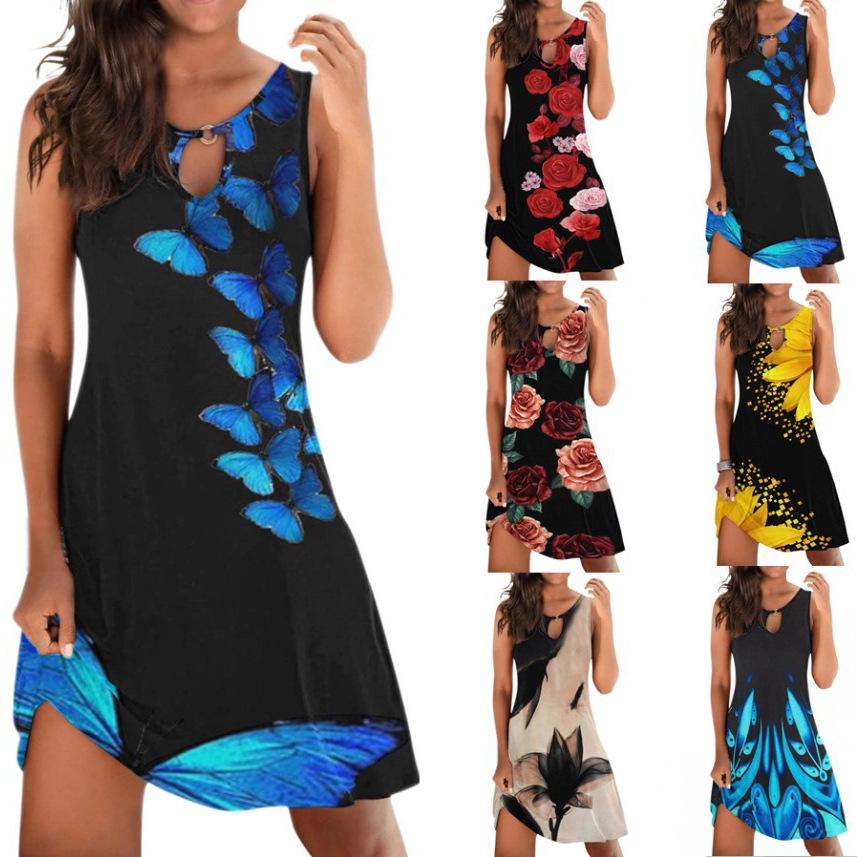 Женское платье с круглым вырезом и геометрическим принтом, без рукавов, с металлической отделкой и средней юбкой — купить товар онлайн с бесплатной доставкой по всему миру!