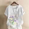 Женская рубашка с короткими рукавами, однобортная, с принтом, из хлопка и льна, с короткими рукавами, круглым вырезом, разрезом по низу
