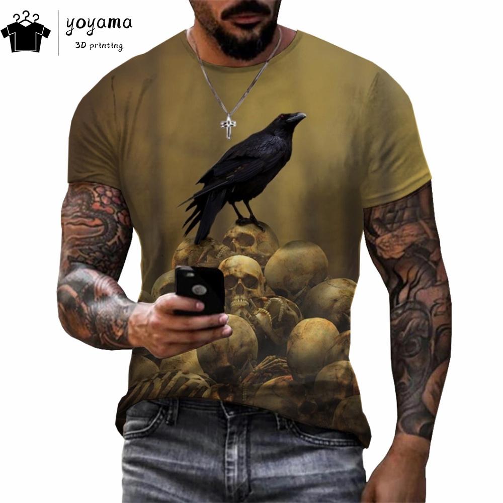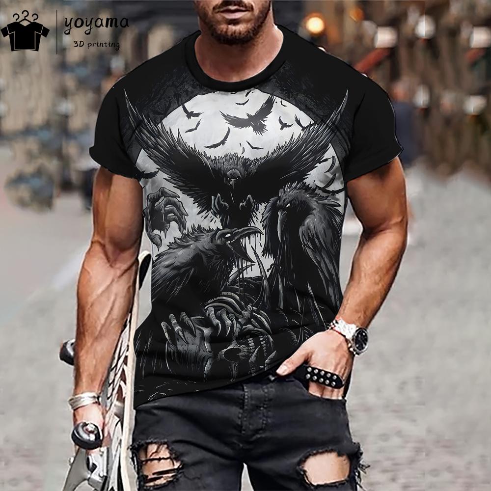 Готический ворон 3D принт мужская одежда модная футболка мужские футболки с принтом ворона футболки с круглым вырезом футболки с коротким рукавом