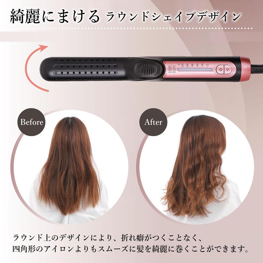 [Круглая форма позволяет аккуратно завивать волосы] Обычные утюжки для волос имеют прямоугольную форму, но утюжок для волос salon de pro имеет закругленный кончик, который позволяет аккуратно завивать волосы.