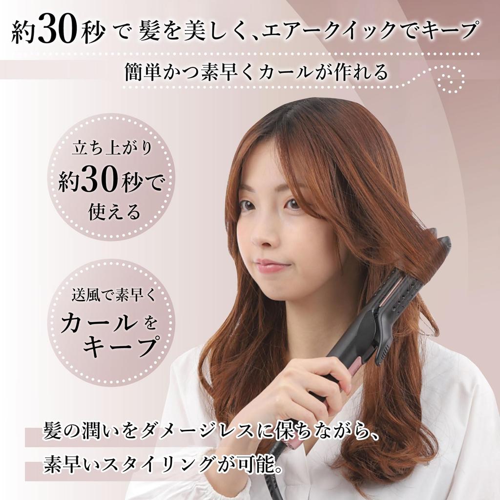 [Утюжок, который выпускает воздух снаружи] Выпуская воздух из отверстий на внешней стороне щипцов для завивки, вы можете охлаждать и кондиционировать волосы, а также удерживать их снаружи.. Легко укладывать вокруг лица и челки, позволяя вам проявить больше креативности при выборе прически.