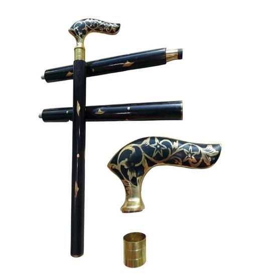 цвет: Элегантный черный стержень из дерева шишам в сочетании с латунной ручкой создают эффектный контраст черного и латунного, подчеркивающий его винтажный вид.