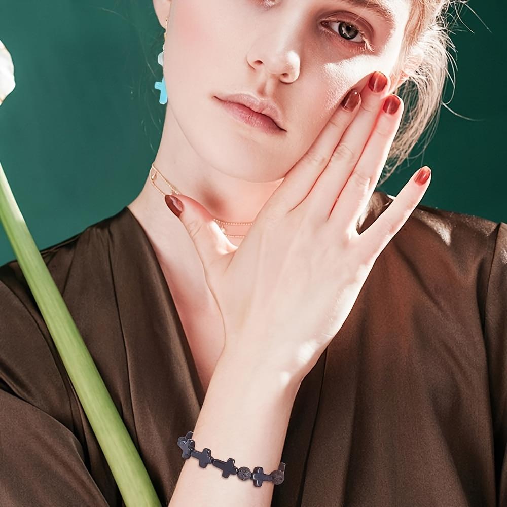 30/60/120 шт. Каменный материал, крестообразные бусины, черный, синий, случайный цвет, крестообразные каменные бусины, ожерелье, браслет, ювелирные изделия, процесс производства