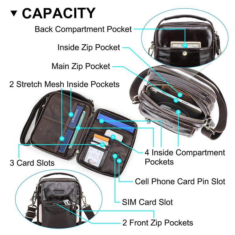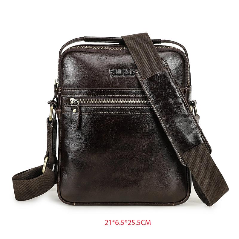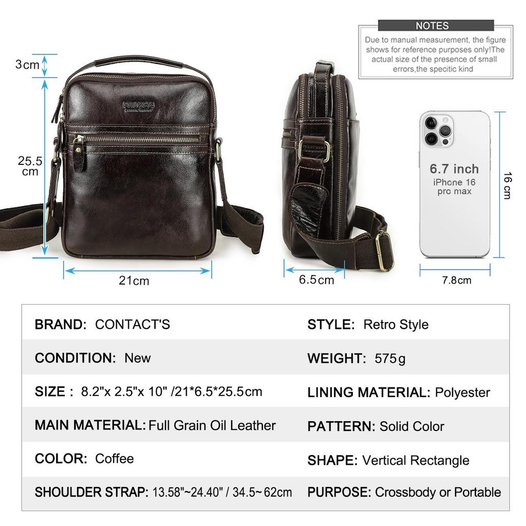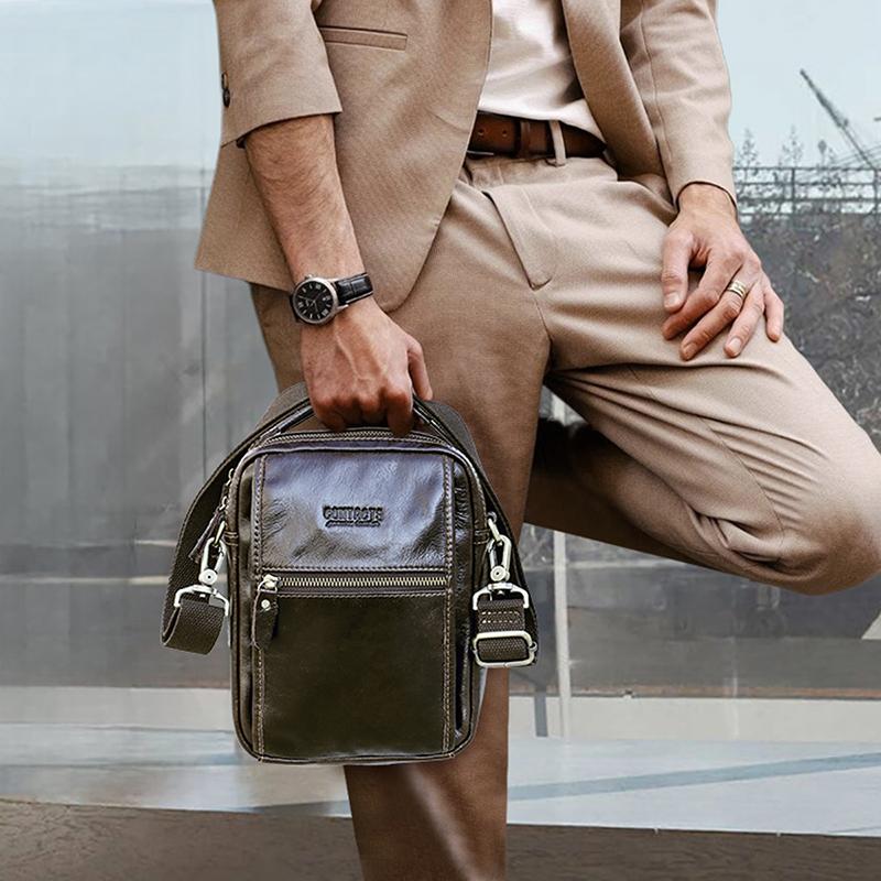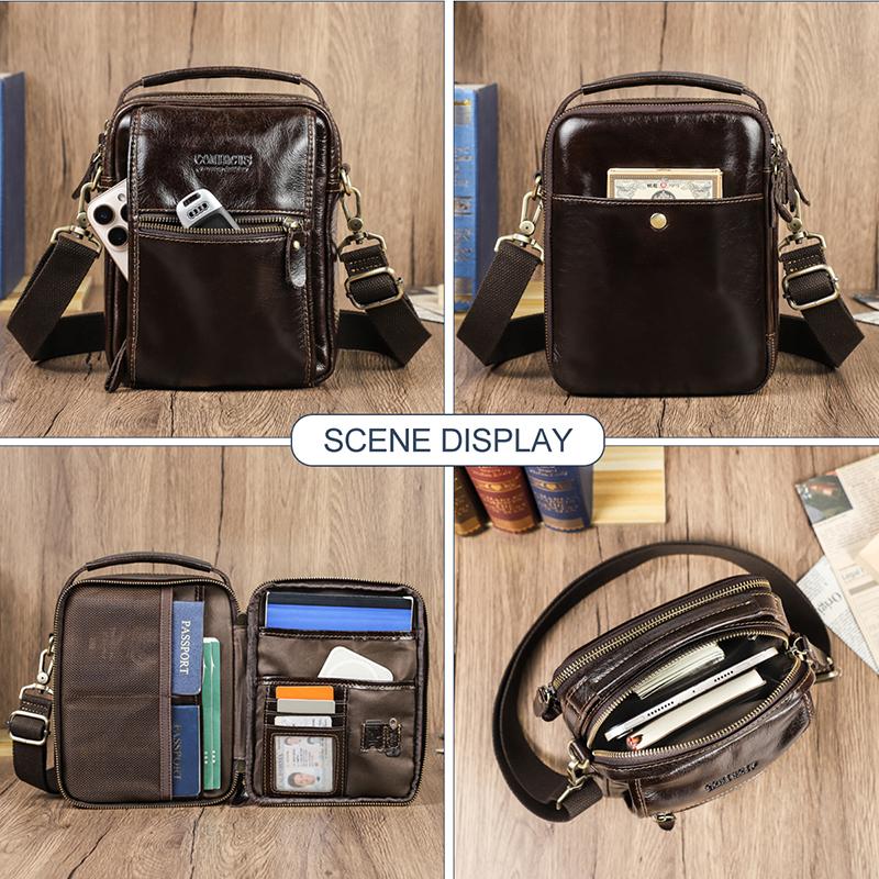 CONTACT'S Натуральная кожа Маленькая сумка через плечо для мужчин Винтажная кожаная сумка через плечо для мужчин Деловая дорожная сумка-слинг Сумки для мужчин