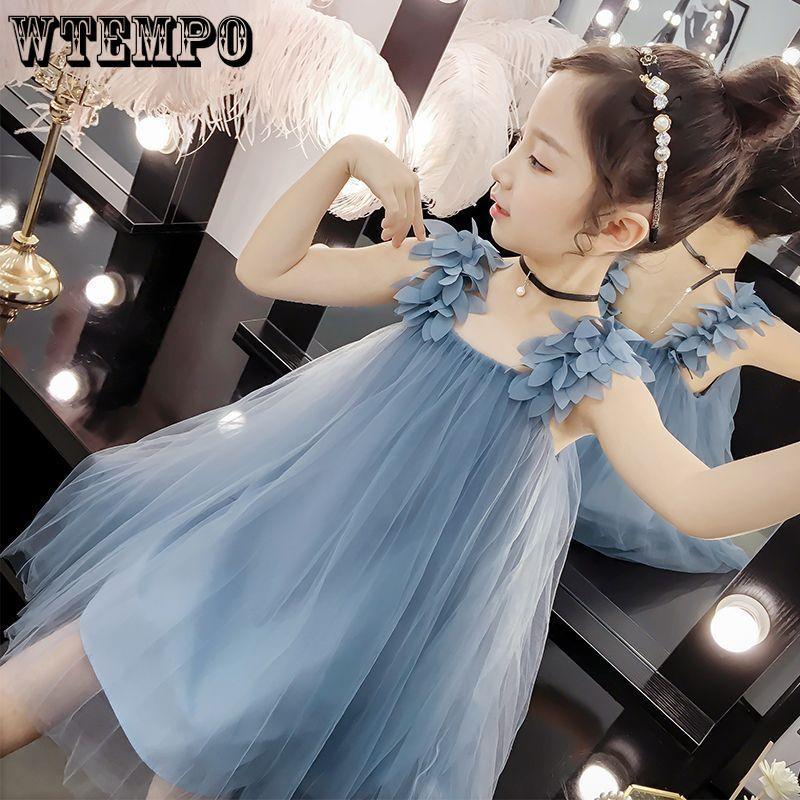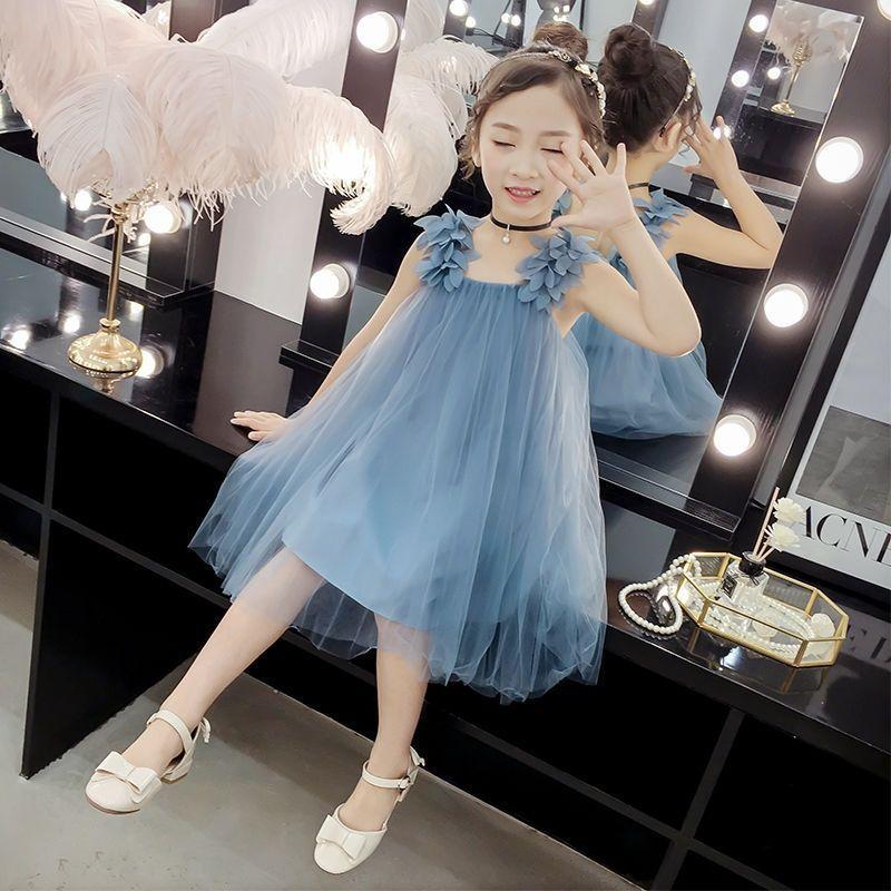 Платье для девочек, летнее платье, стильное корейское детское платье, пышное газовое платье принцессы для девочек