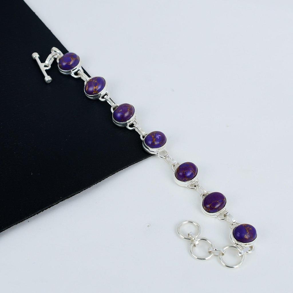 Браслет из фиолетового медно-бирюзового драгоценного камня ручной работы из стерлингового серебра 925 пробы, браслет из фиолетового медно-бирюзового камня для жены, браслет унисекс на День отца — купить товар онлайн с бесплатной доставкой по всему миру!