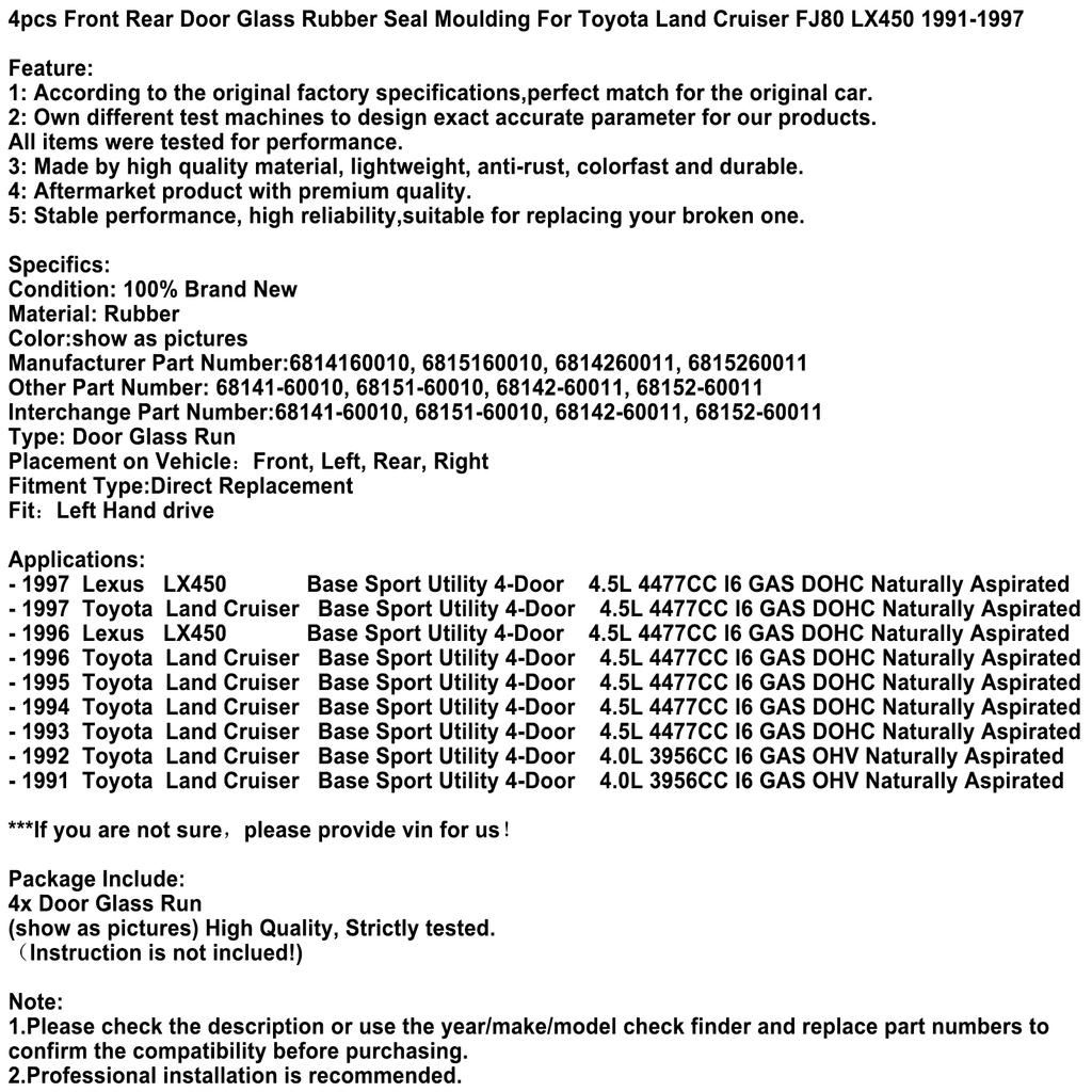 4 шт. резиновый уплотнитель стекла передней задней двери для Toyota Land Cruiser FJ80 LX450 1991-1997