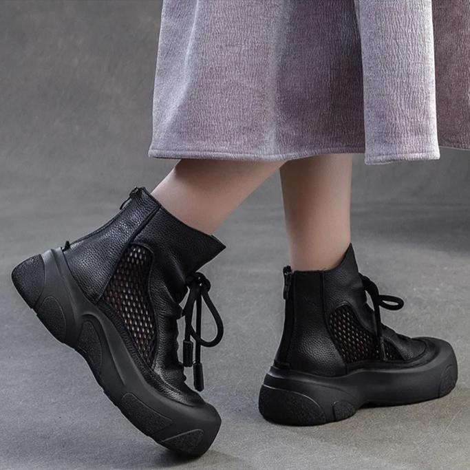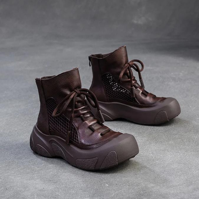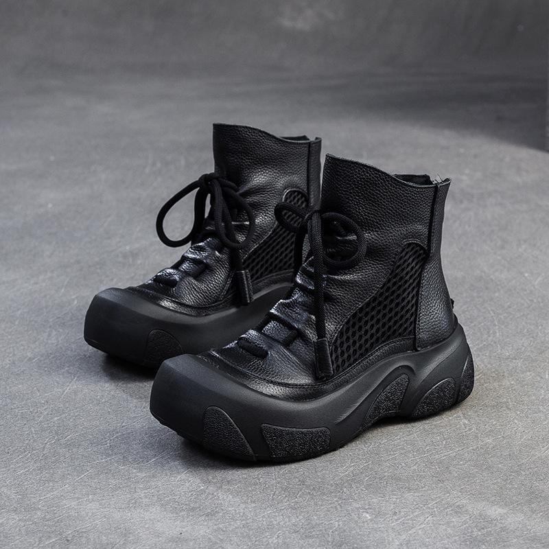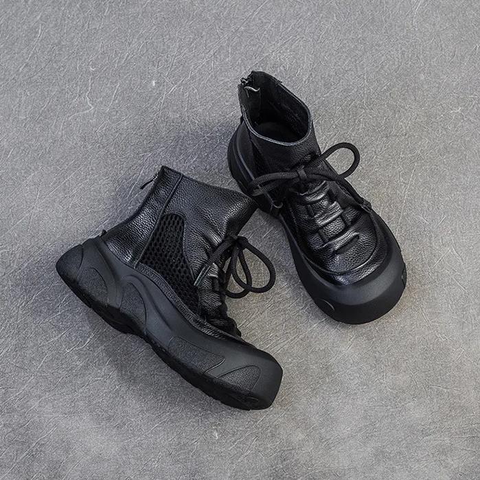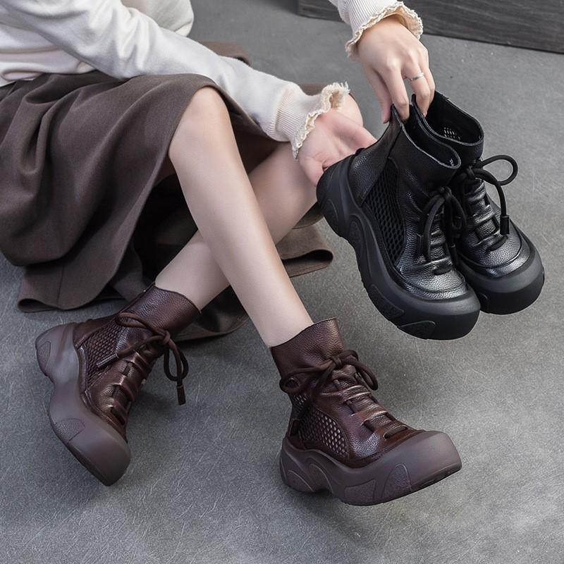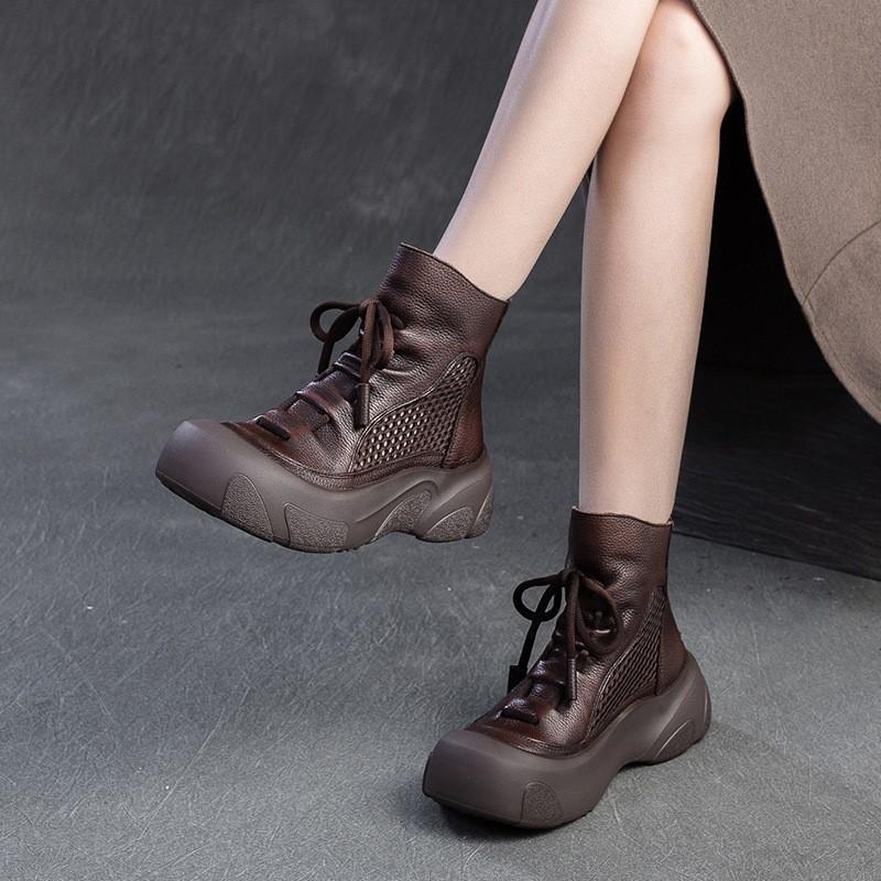 Johnature Ботинки из натуральной кожи с вырезом, ретро, ручная работа, круглый носок, дышащие женские туфли на толстой подошве