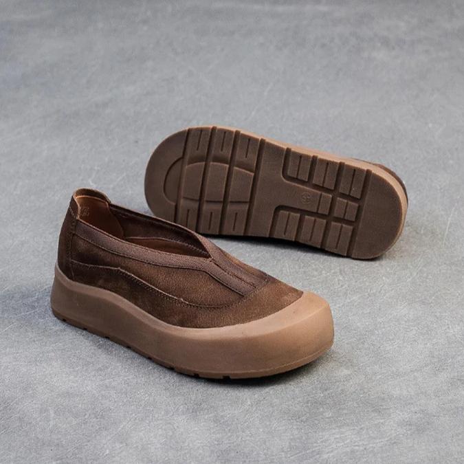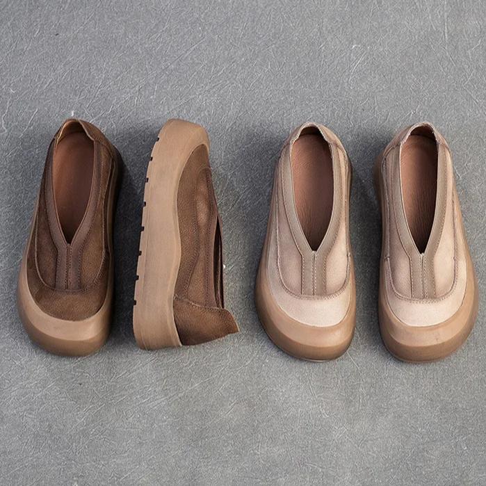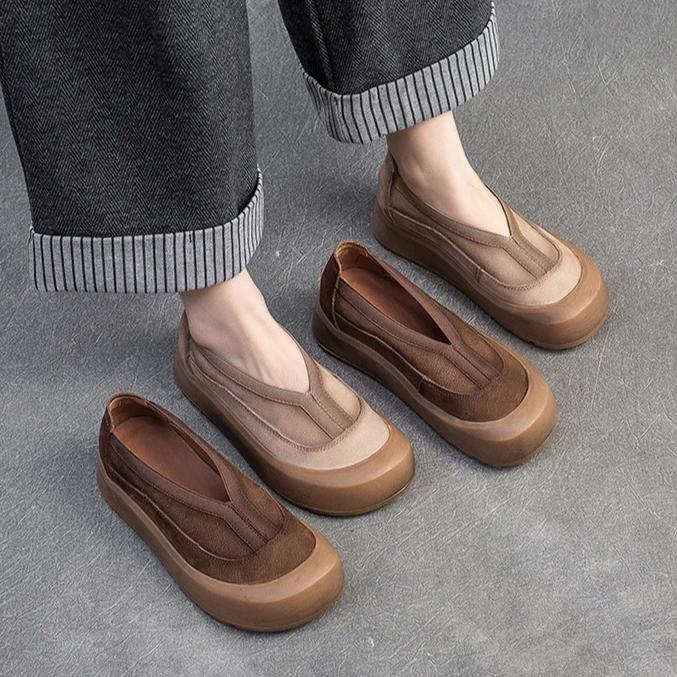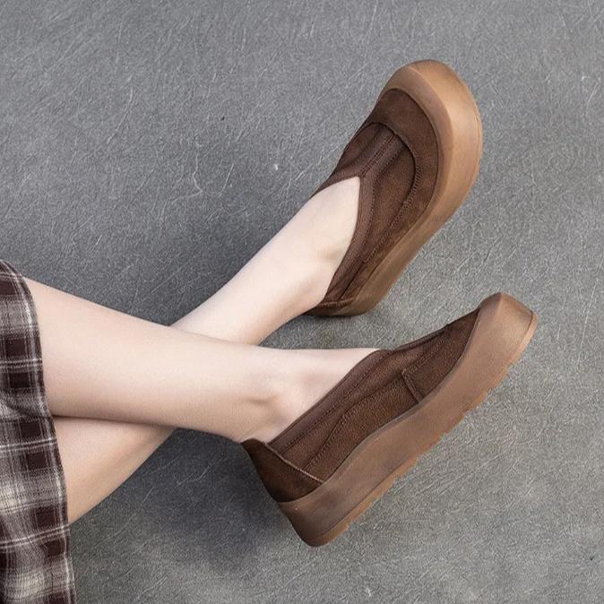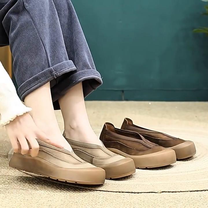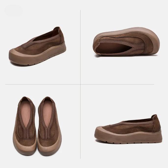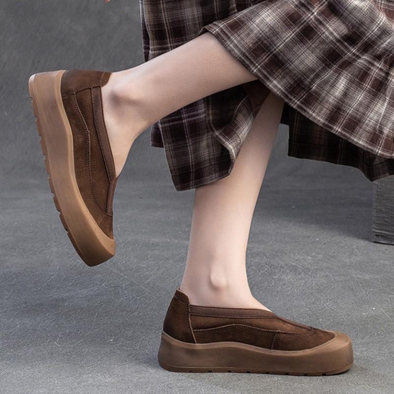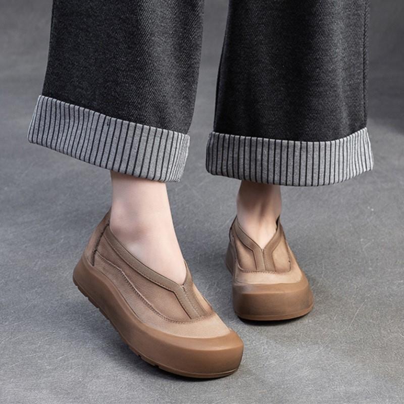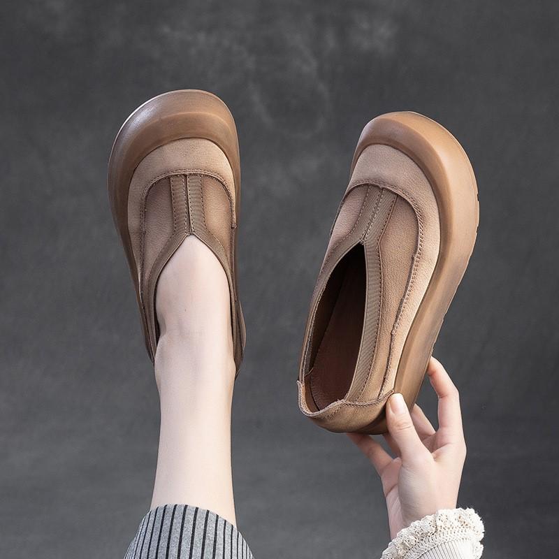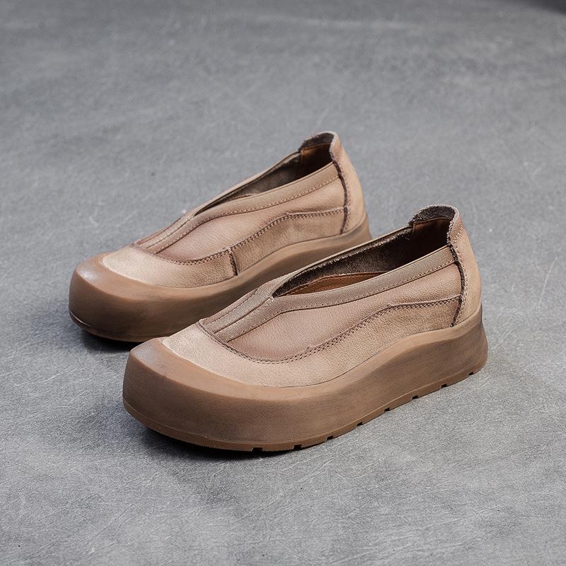 Johnature Натуральная кожа толстая подошва круглый носок мокасины ретро удобные женские туфли на плоской платформе