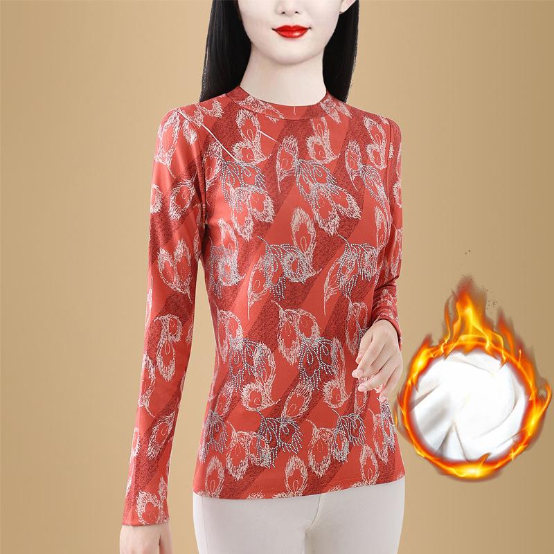 Зимняя утолщенная интегрированная бархатная рубашка для женщин с облегающей внутренней теплой футболкой, модный и модный топ с принтом для мам