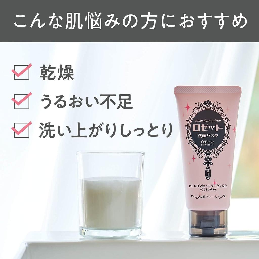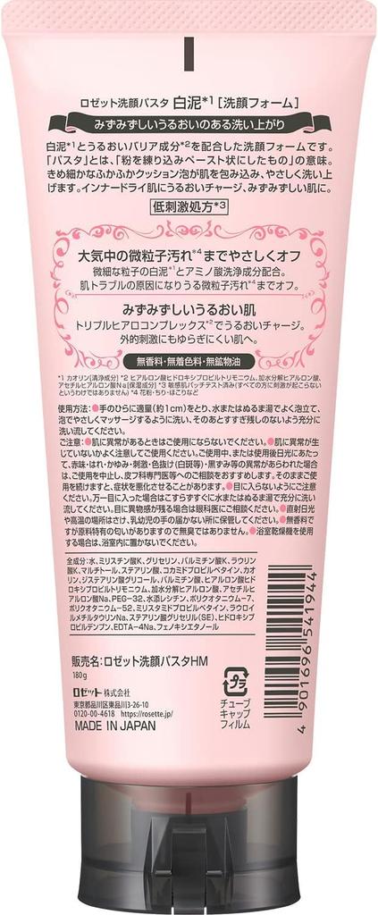 [Почему «паста»?] «Паста» означает «что-то, сделанное путем замешивания муки в пасту». Название «Очищающая паста для лица Rosette» происходит от того факта, что этот крем изготавливается путем замешивания мелкого порошка, тщательно отобранного в соответствии с проблемами кожи, с использованием уникального традиционного метода производства Rosette, «Формула пасты».