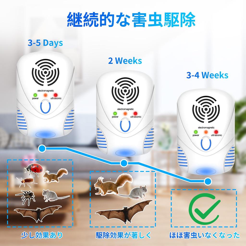 [Принцип уничтожения] Ультразвуковой уничтожитель крыс использует самый передовой принцип управления микрокомпьютером! Мощно отпугивает вредителей, испуская частотные импульсные звуковые волны электромагнитных волн + 5 типов ультразвуковых волн + волны давления.. Такие вредители, как комары, тля, пауки, постельные клопы, тараканы, крысы, блохи и муравьи, могут повредить ваш слух и нервную систему из-за воздействия мощных звуковых волн, заставляя их бежать из помещения.. уведомление: Данный продукт предназначен только для отпугивания вредителей в помещениях и не обладает инсектицидным действием.
