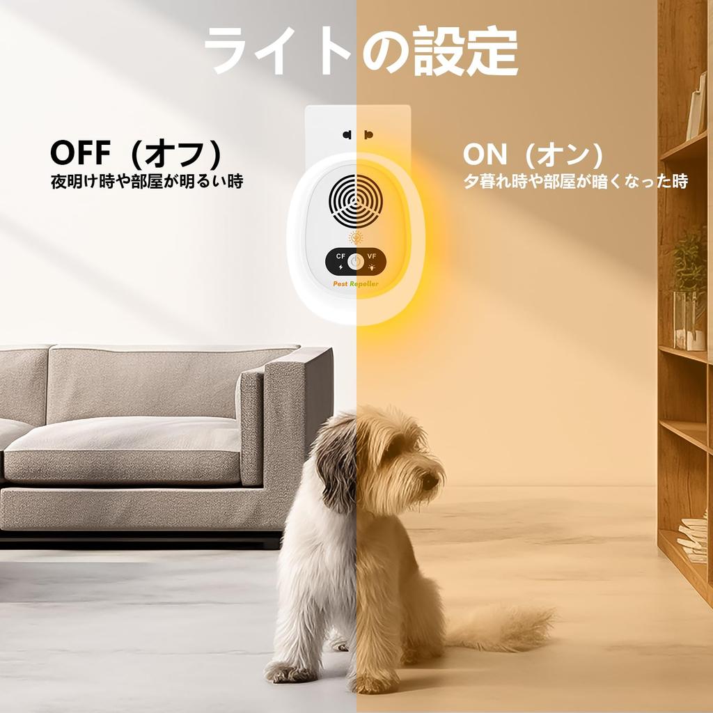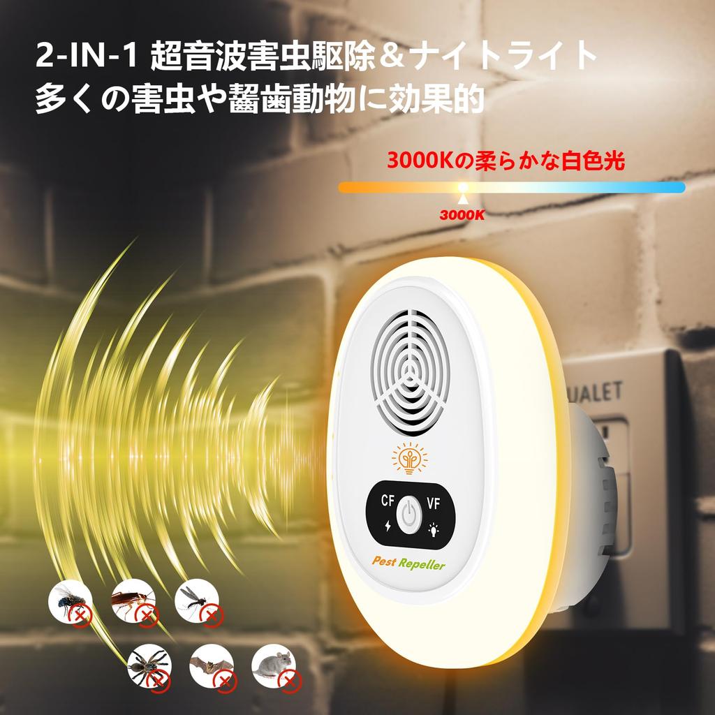«Многофункциональная конструкция 2 в 1» Этот продукт оснащен 4 типами ультразвуковых режимов и случайным образом изменяет частоту для эффективного уничтожения вредителей, таких как крысы, тараканы и комары.. Это предотвращает привыкание вредителей к средству и сохраняет его отпугивающий эффект в течение длительного периода времени.. Он также имеет функцию мягкого ночника с цветовой температурой 3000 К, что делает его пригодным для использования в спальнях и детских комнатах.. *Этот продукт предназначен для отпугивания вредителей и не обладает инсектицидным действием.