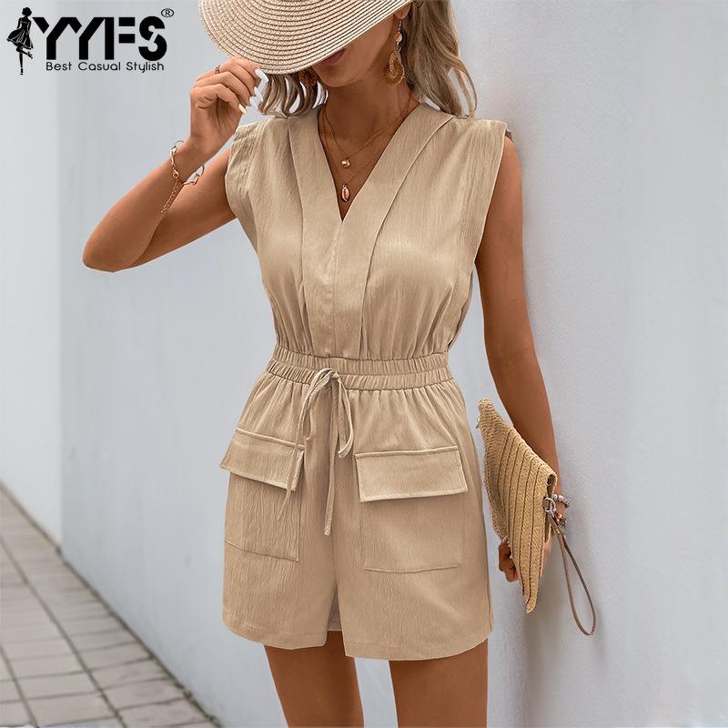 YYFS Женские модные повседневные летние весенние однотонные брюки без рукавов с v-образным вырезом и высокой талией, комбинезоны и комбинезоны