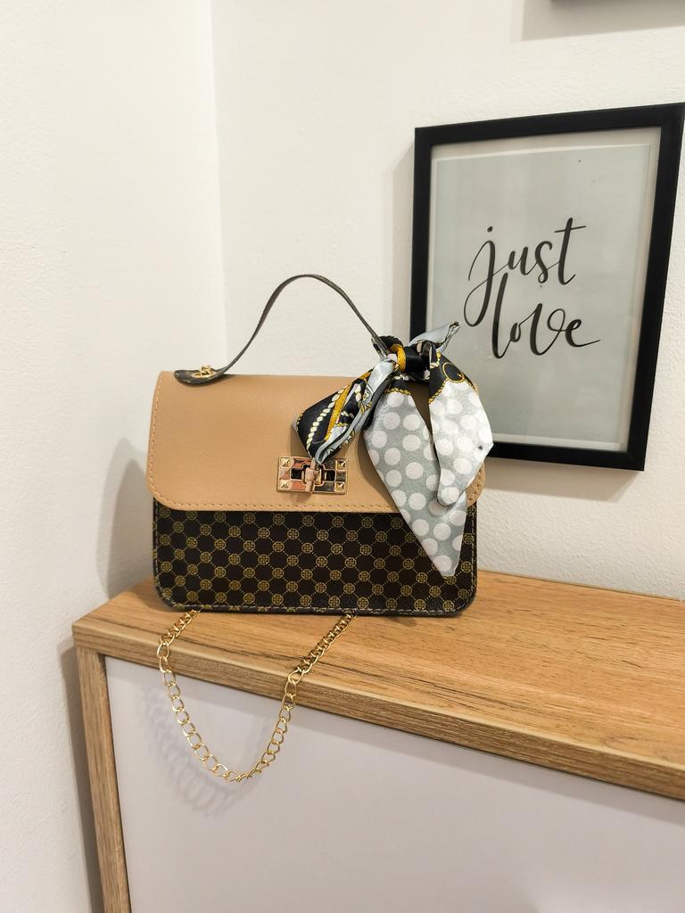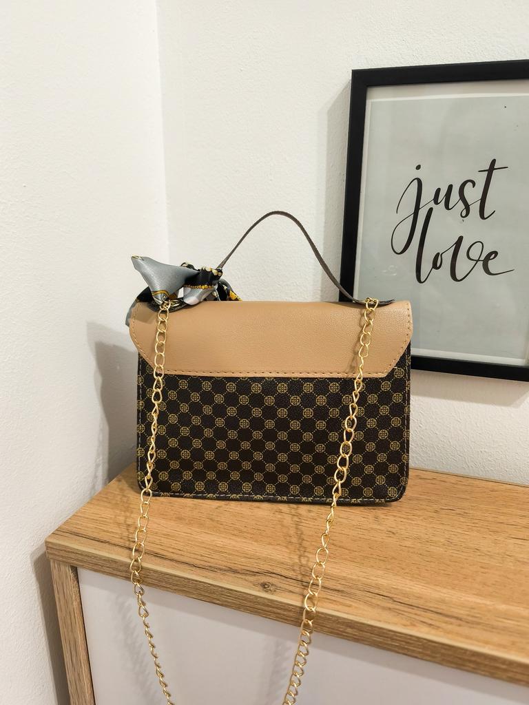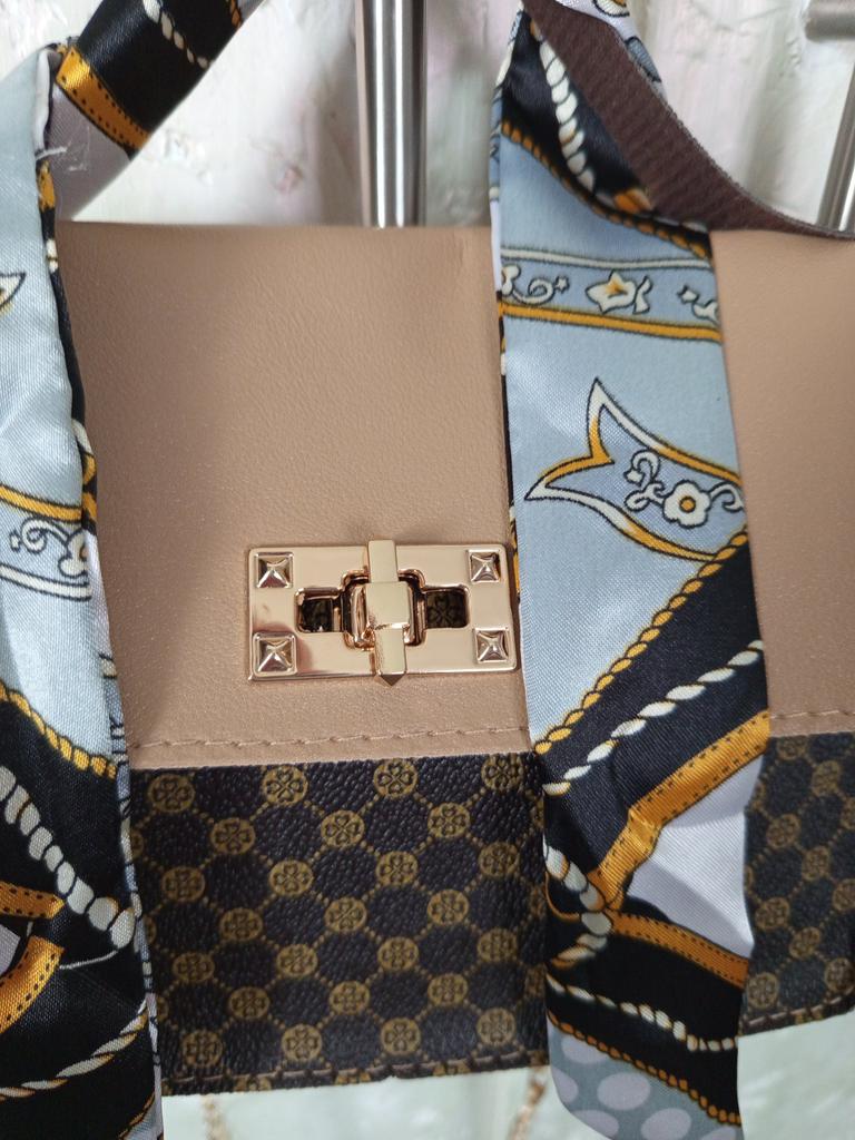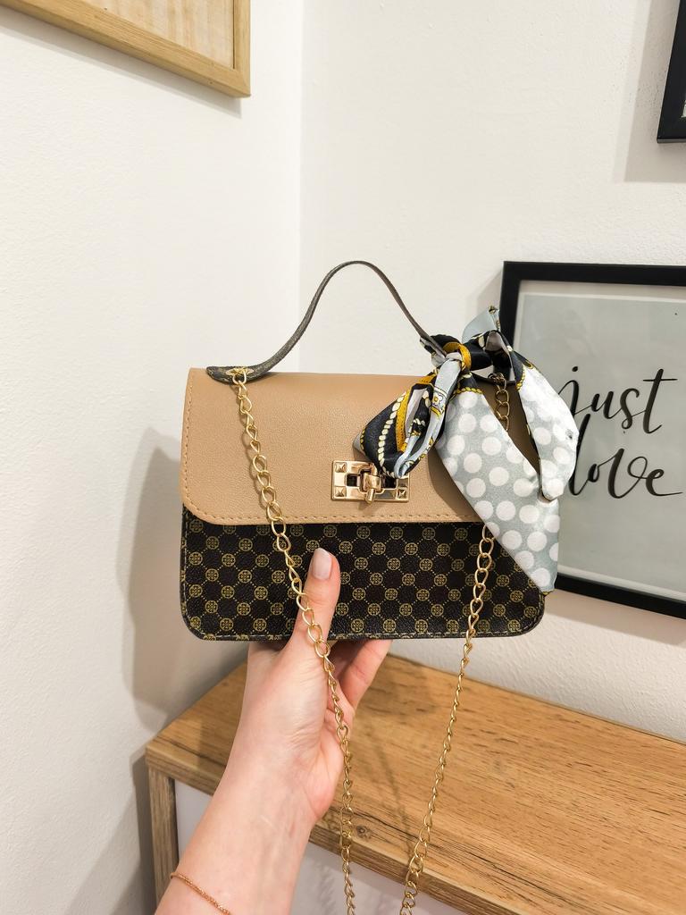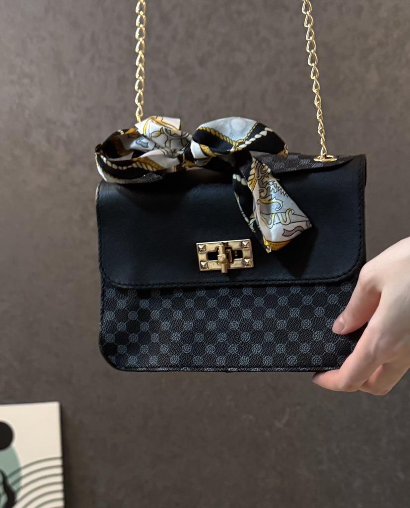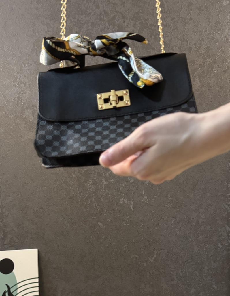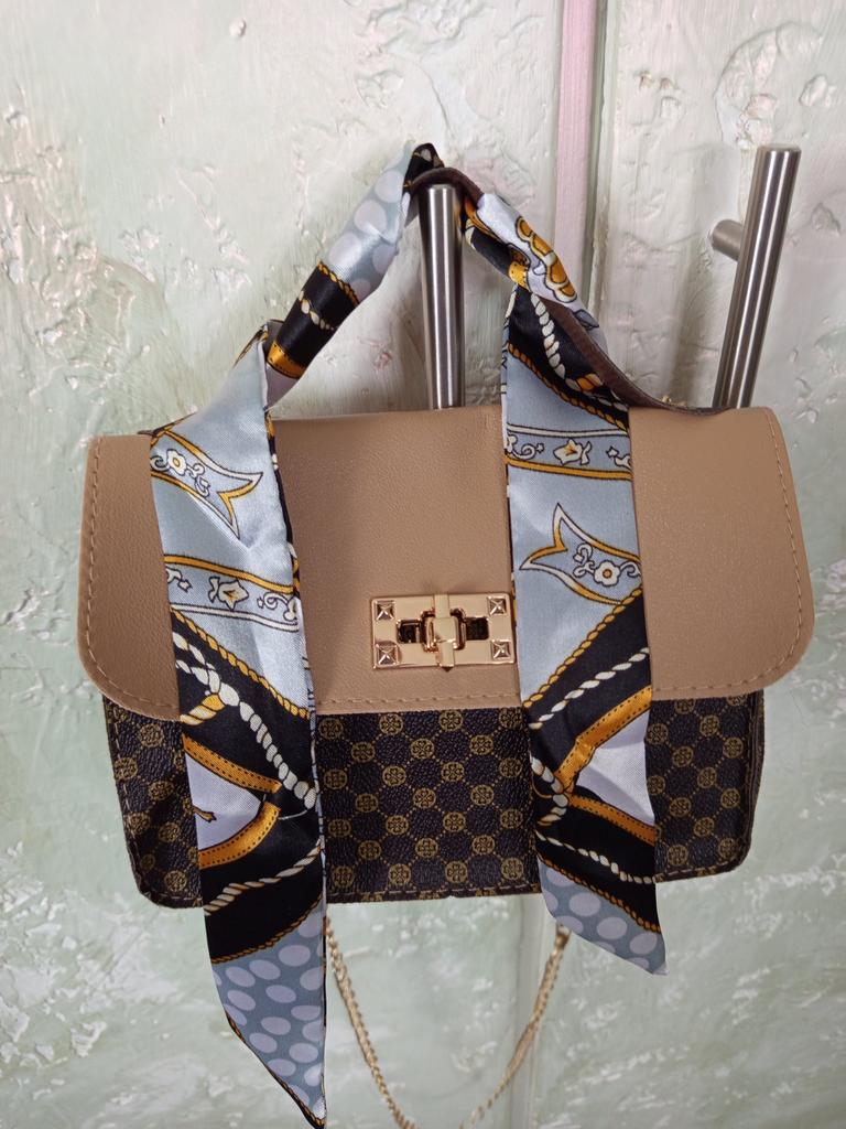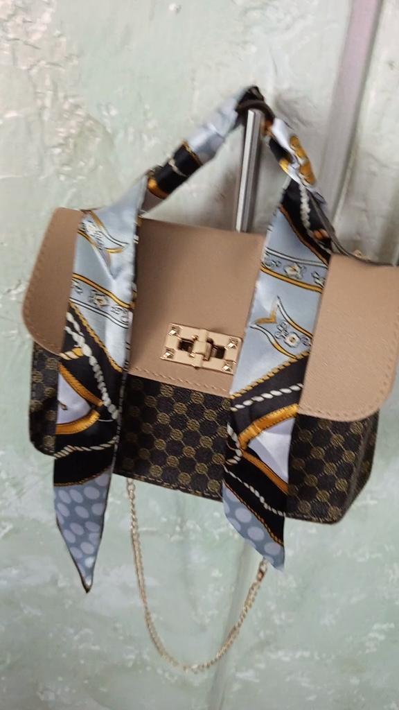 🔸Эта небольшая сумочка имеет прямоугольную форму и клапан, что придает ей классический вид. Размер 14 на 20 см. 🔸Сочетание бежевого и коричневого цветов создает элегантный контраст. 🔸Узор на нижней части сумки состоит из повторяющихся коричневых ромбов, что добавляет изысканности. 🔸Золотистая цепочка и замок придают сумке роскошный вид. 🔸К ручке сумки привязан шелковый платок с узором, что добавляет игривый акцент. Рекомендую 👍 Ставлю ⭐ ⭐ ⭐ ⭐ ⭐ Большое спасибо продавцу ❤️ и Joom ❤️