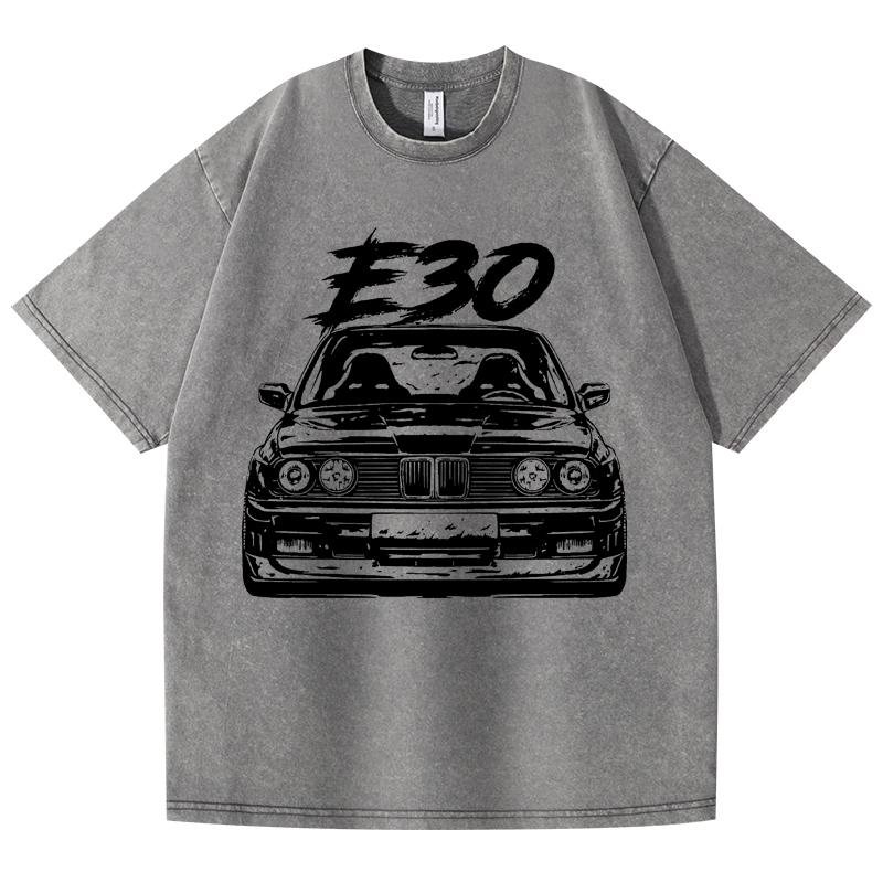 Футболка в стиле ретро с эффектом потертости E30 Car 100% хлопок футболка флисовая толстая теплая женская мужская хип-хоп футболка с круглым вырезом