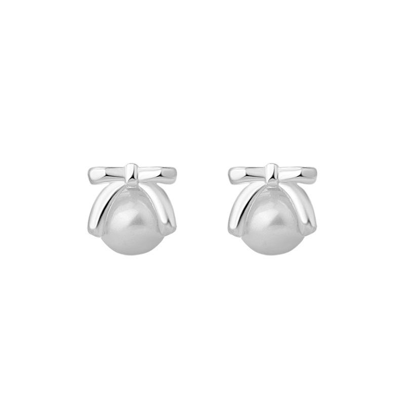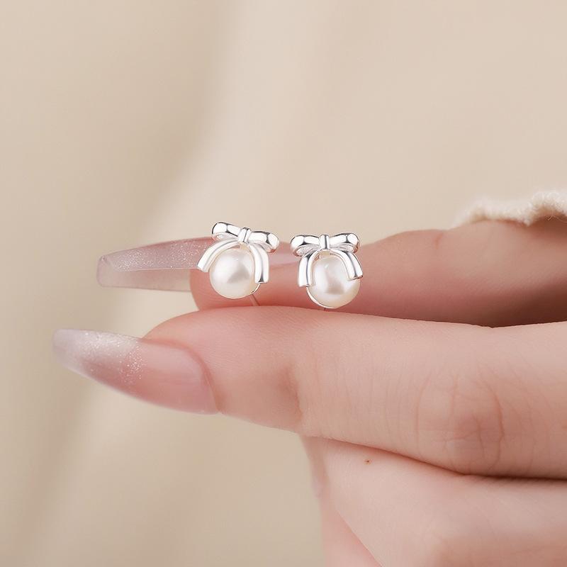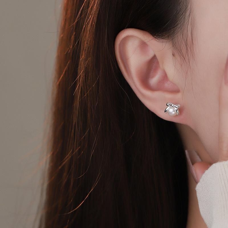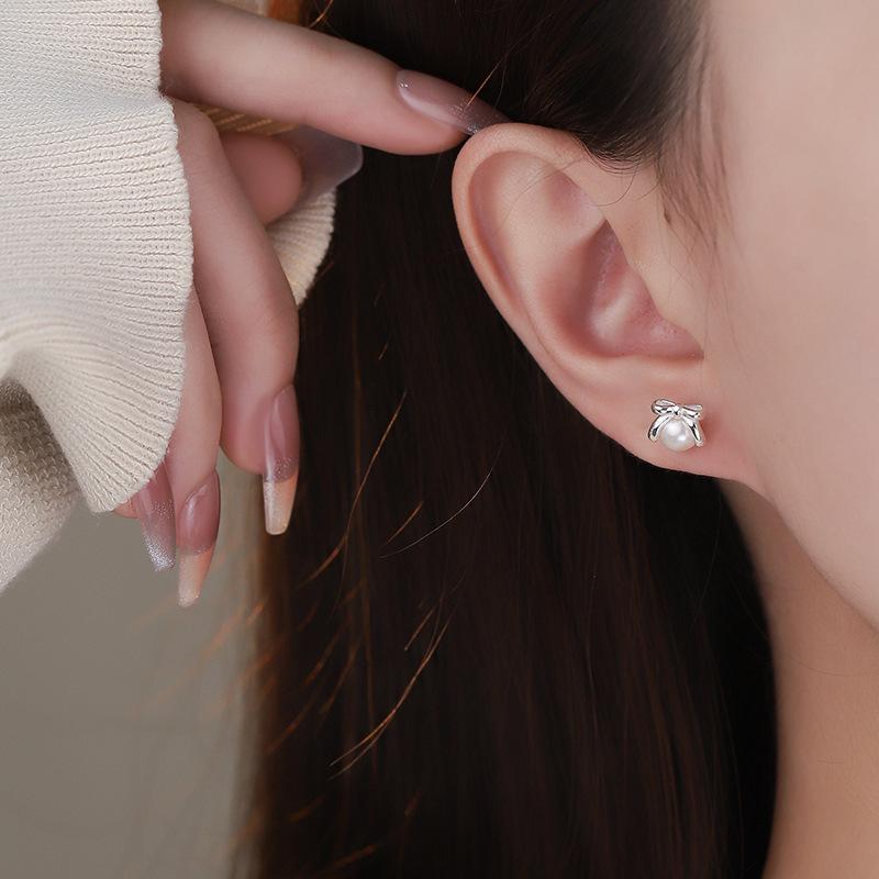 Серьги-бантики с жемчугом, свежие, милые, простые, литературные и изысканные украшения для прокалывания ушей