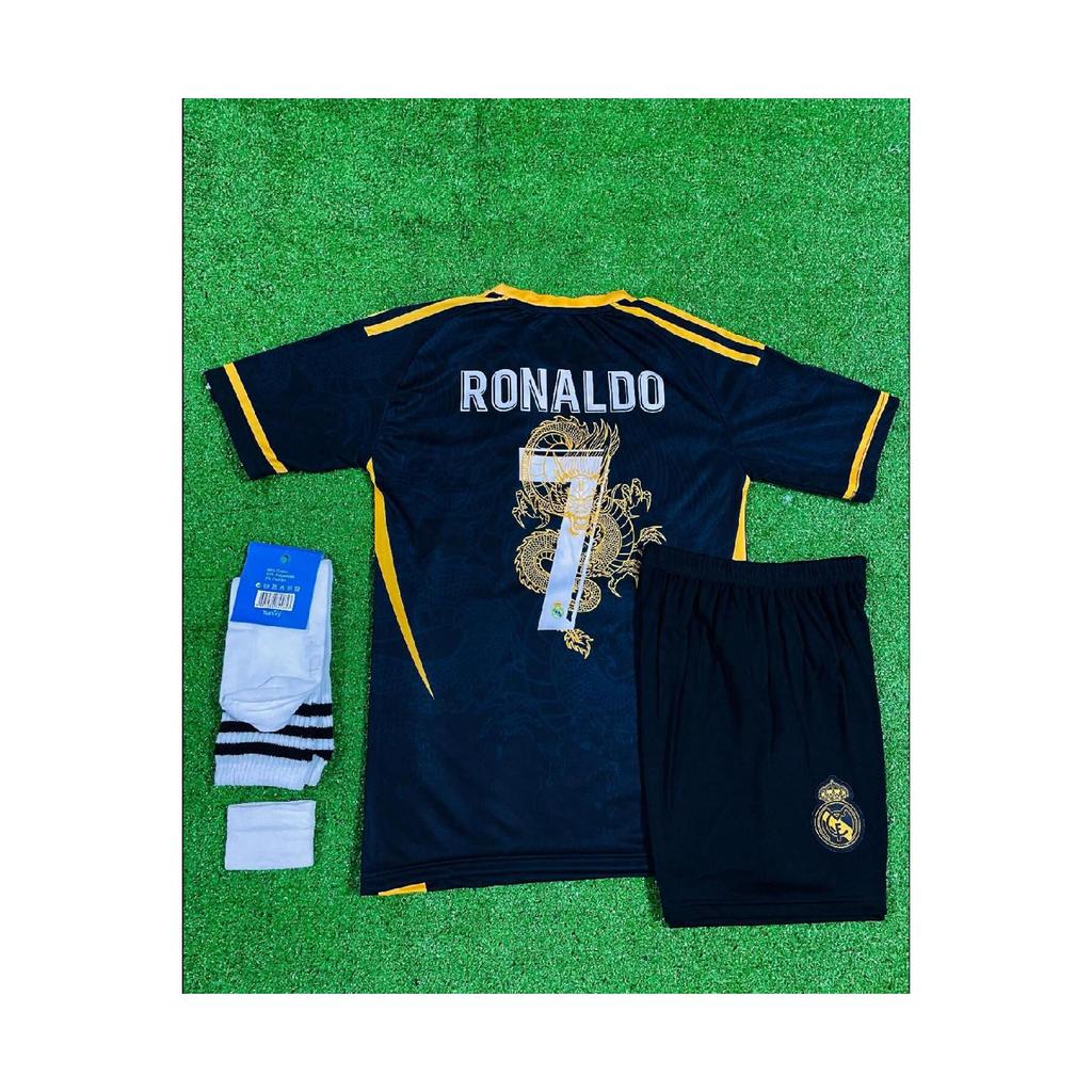 R.e.a.l.m.a.d.r.i.d 2024/25 New Season Cristiano Ronaldo Concept Children's Jersey 4 Piece Set (black-gold)