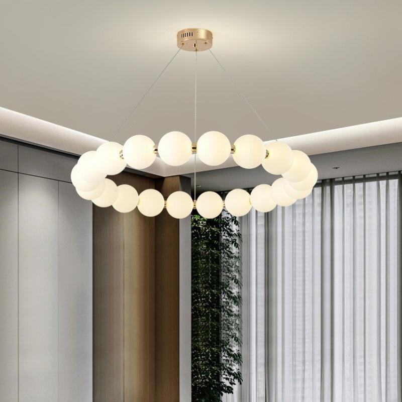 Подвесной светильник для гостиной в скандинавском стиле, простой светодиодный светильник для спальни, круговой светильник для столовой с жемчужным ожерельем