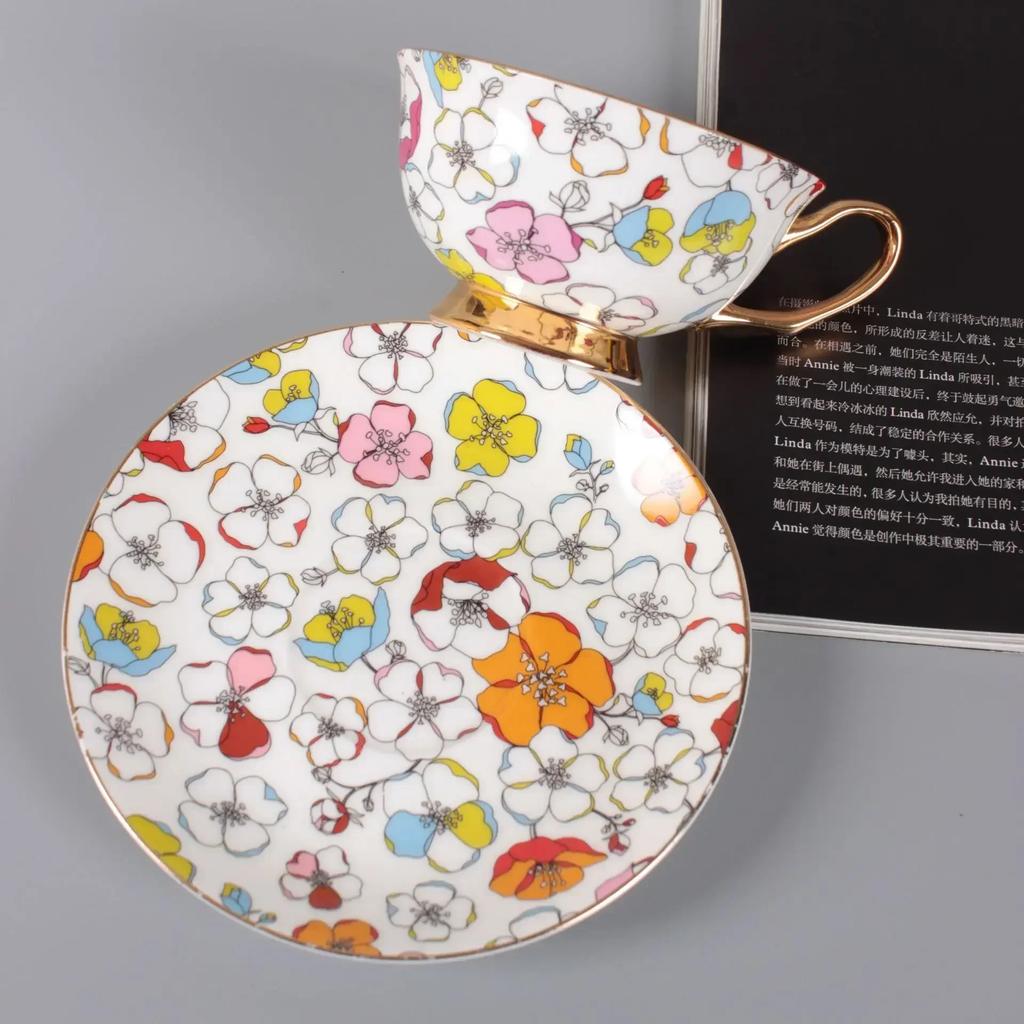Европейская кофейная чашка с блюдцем Маленькая чашка для свежей воды Чайная чашка Британский послеобеденный чай Керамическая чашка из костяного фарфора Подарки Подарки на праздники