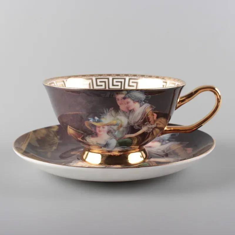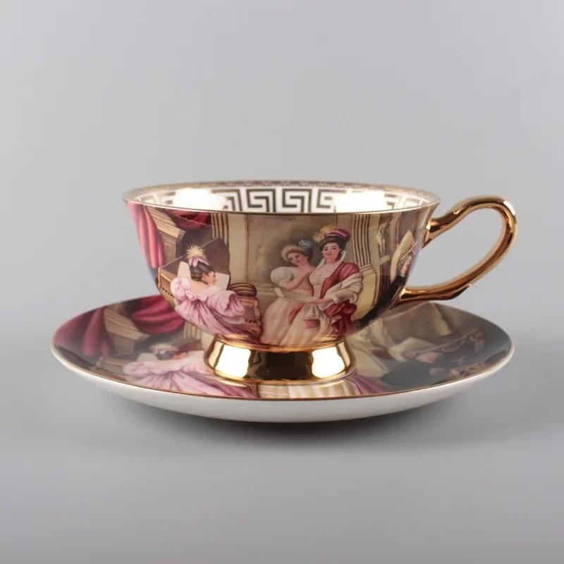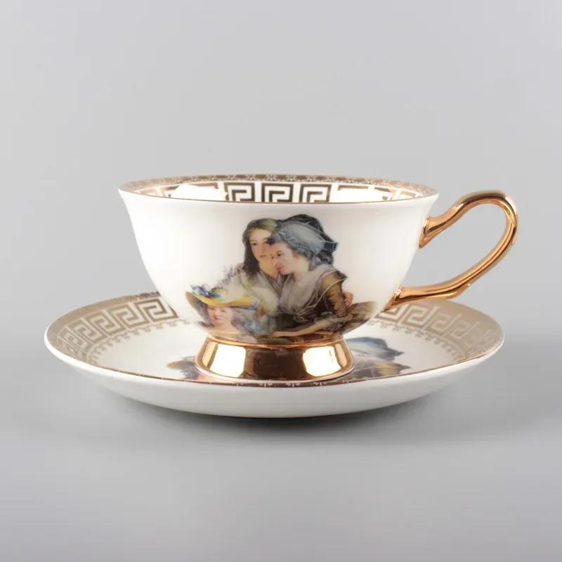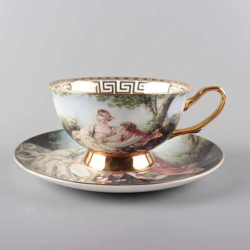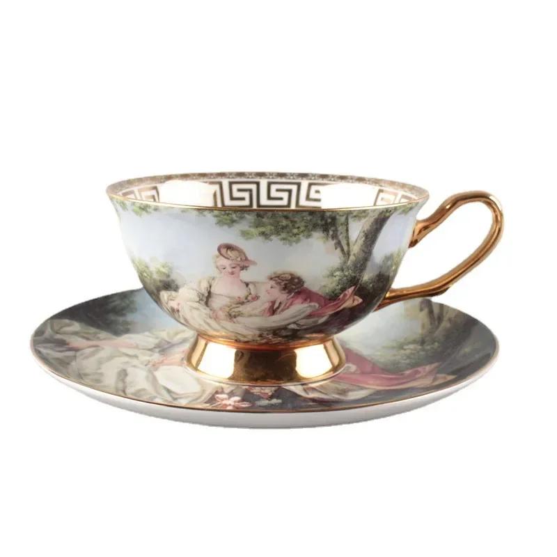 Европейский набор из кофейных чашек и блюдец, керамическая чашка в стиле ретро из костяного фарфора, цветочный чай из Пномпеня, чашка для латте, британский послеобеденный чай.