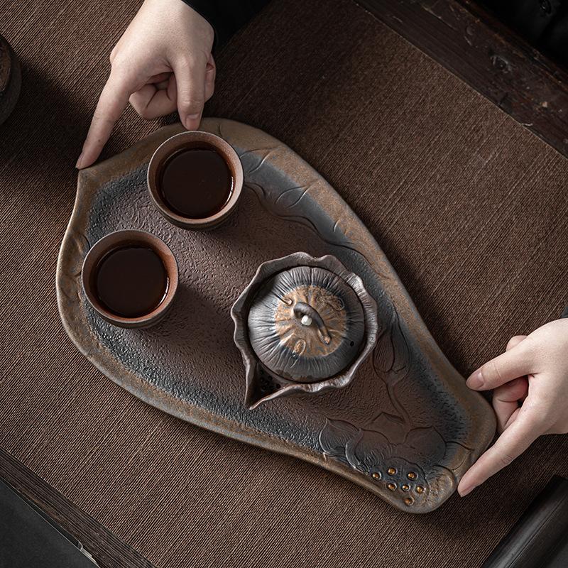 Японский поднос из сухой пены Бодхи, блюдце, тарелка, позолоченная тарелка Тито, каменный чайный сервиз Кухня, ресторан, бар Домашний сад