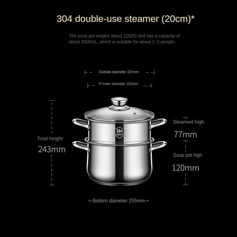Двойная пароварка для супа с двойными ушами, микроскороварка с двойным уплотнением, нержавеющая сталь 304, кастрюля для кипячения молока с комбинированным дном