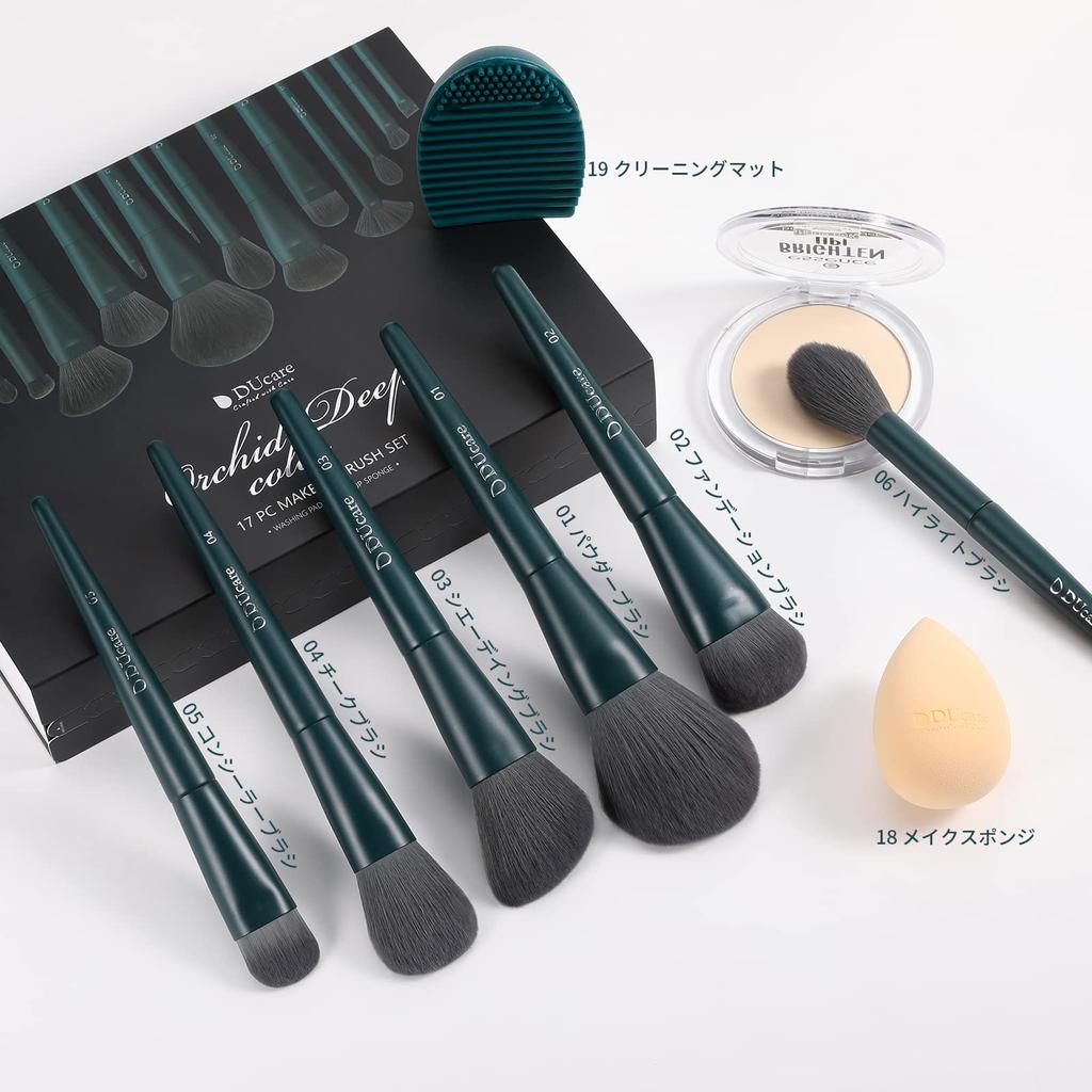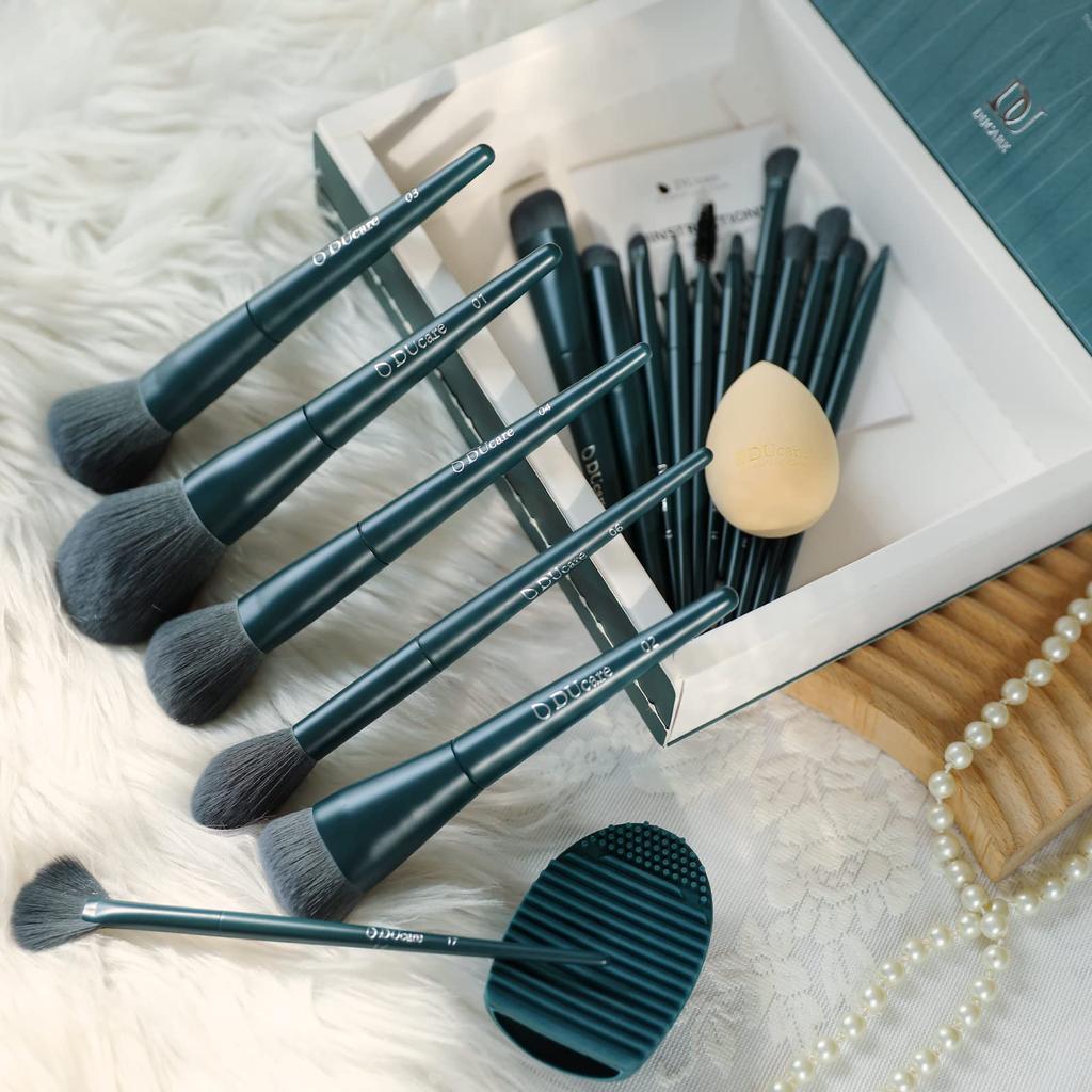 DUcare Набор кистей для макияжа из 17 штук, косметические кисти, премиальный фибровый ворс, очищающие, матовые и для макияжа с губкой, профессиональные кисти для макияжа, кисть для тональной основы
