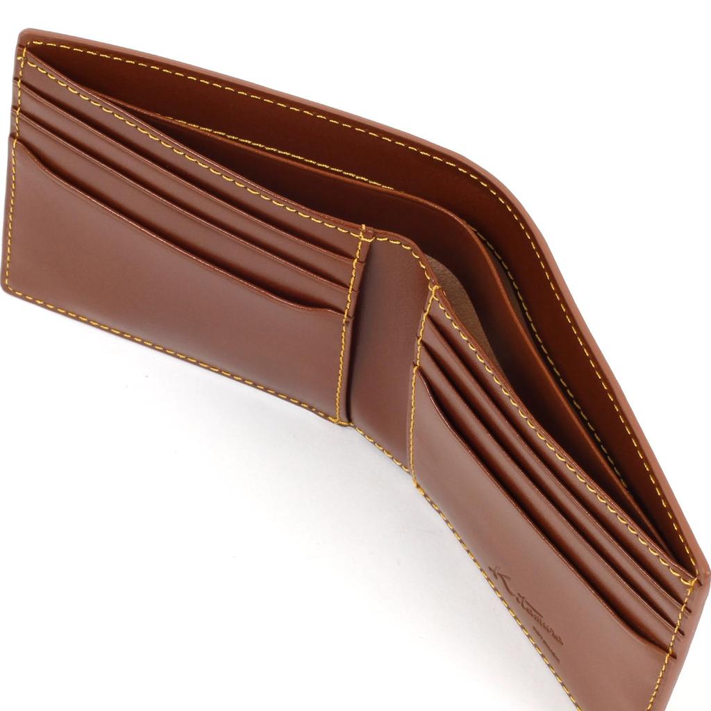 Коричневый кожаный кошелек-бифолд ZH0481 Stitch 60401 [Kitamura] (Бумажник) Коричневый/Желтый [Коричневый]
