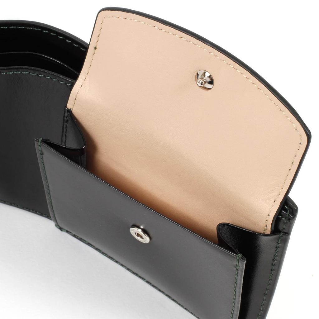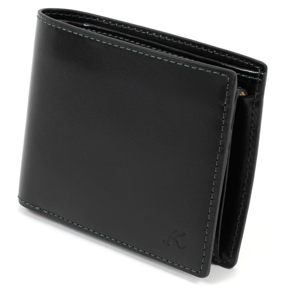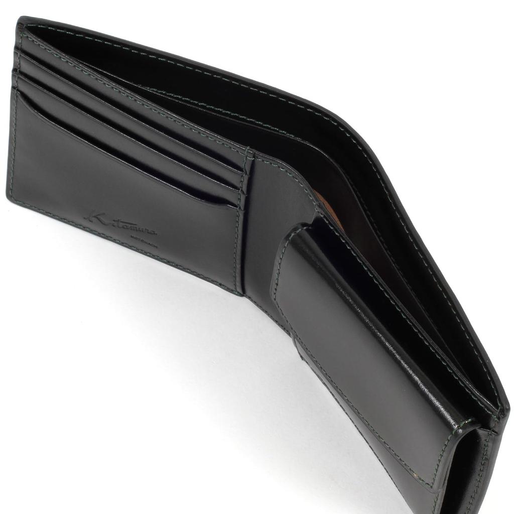 Бумажник двойного сложения из дубленой кожи ZH0480 с зеленой строчкой 15321 [Kitamura] Черный/Темный [Черный]