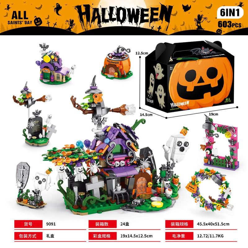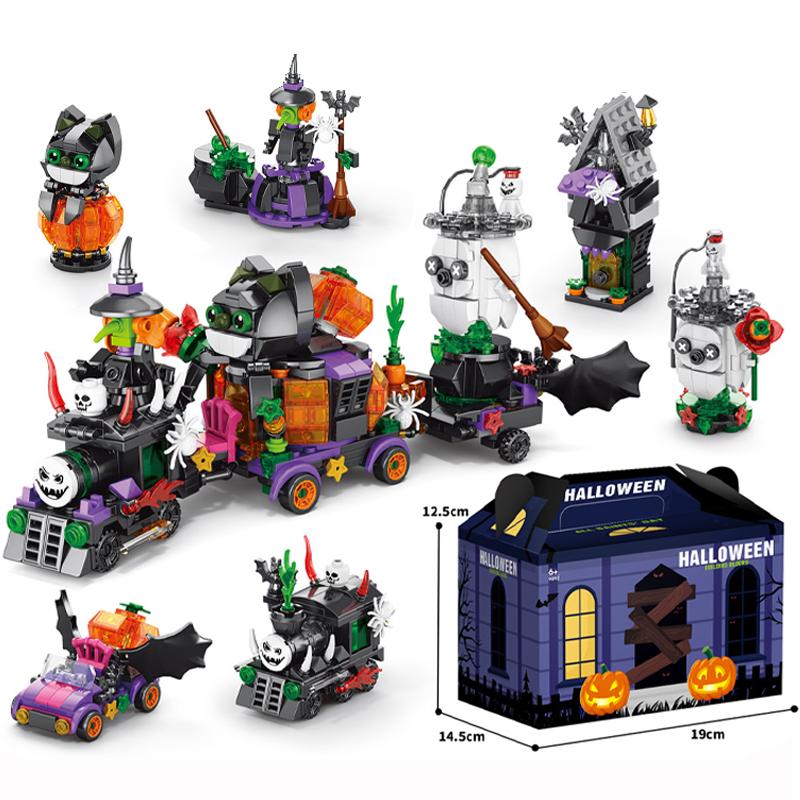 Творческий Хэллоуин Призрачный Дом Призрачный Поезд Настольная Атмосфера Украшения Строительные Блоки Кирпичи Игрушки для Детей Мальчики и Девочки 6+