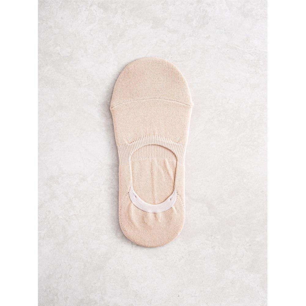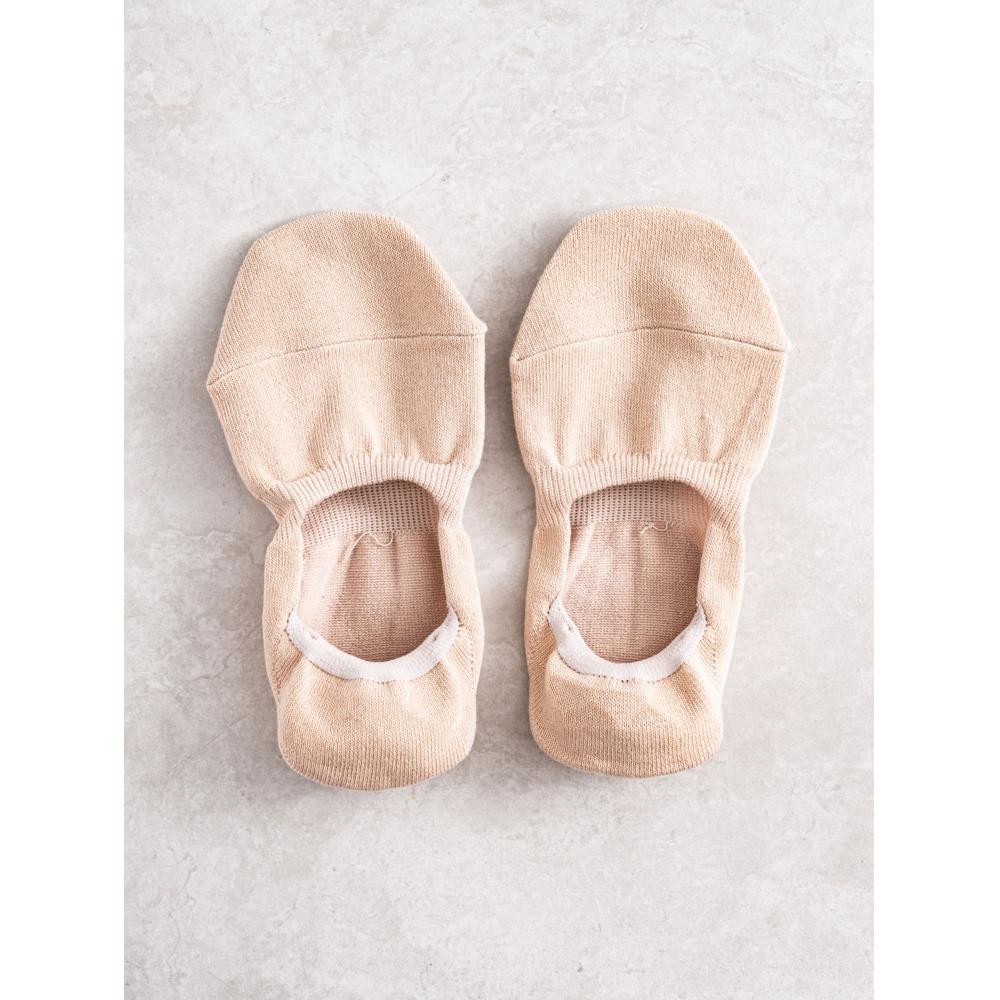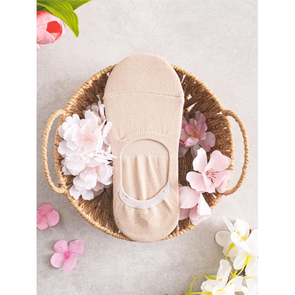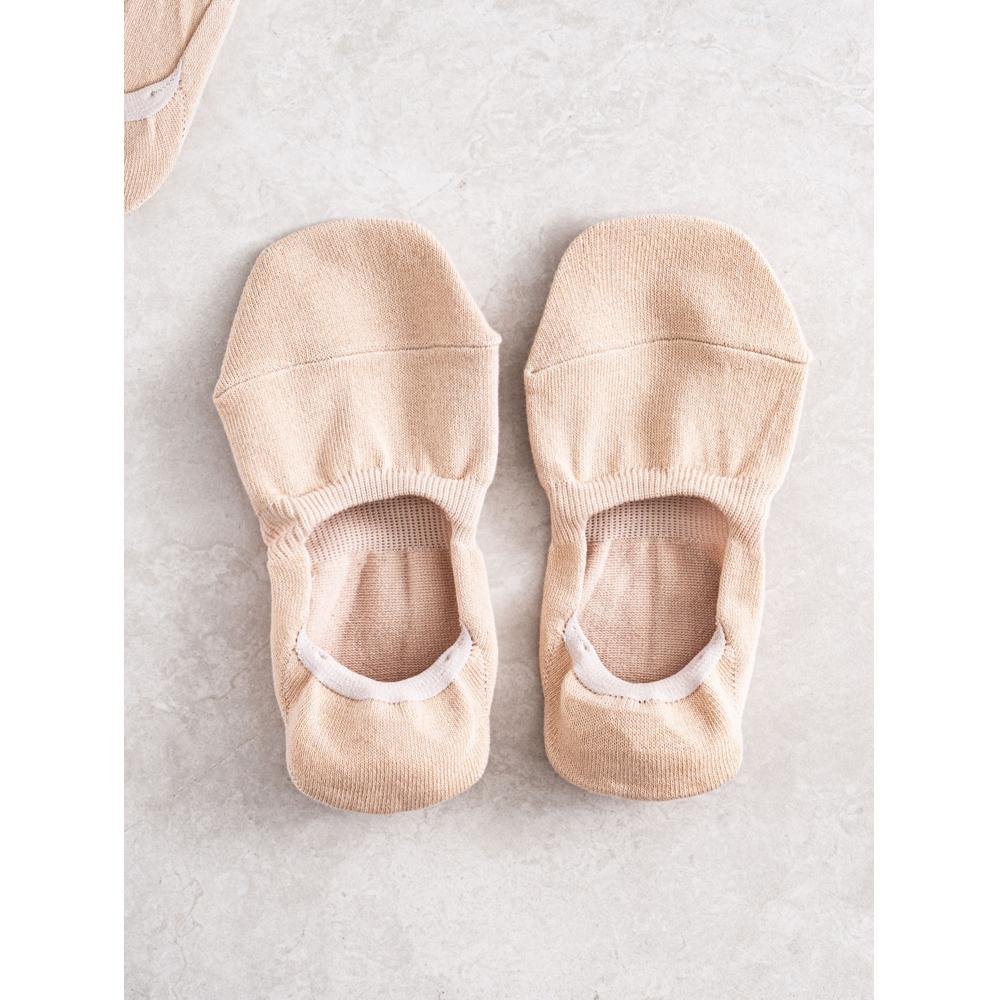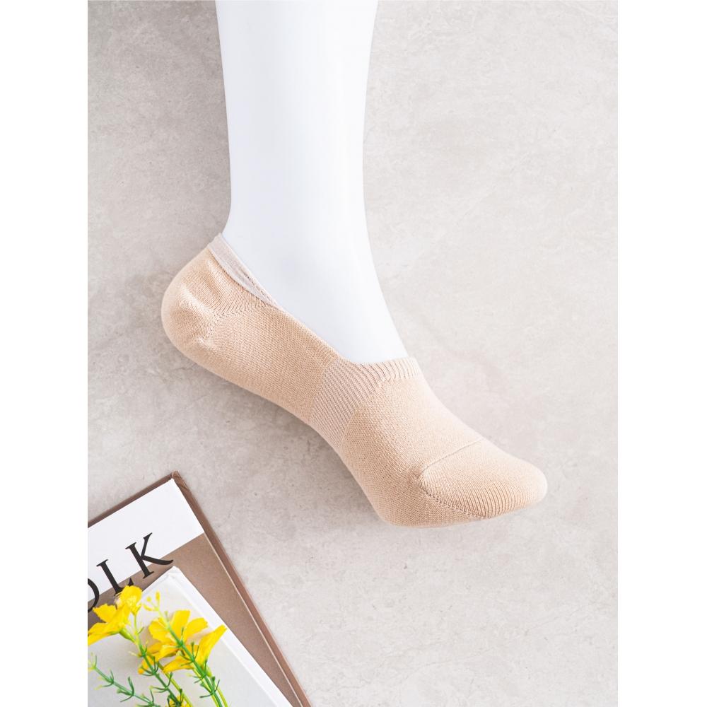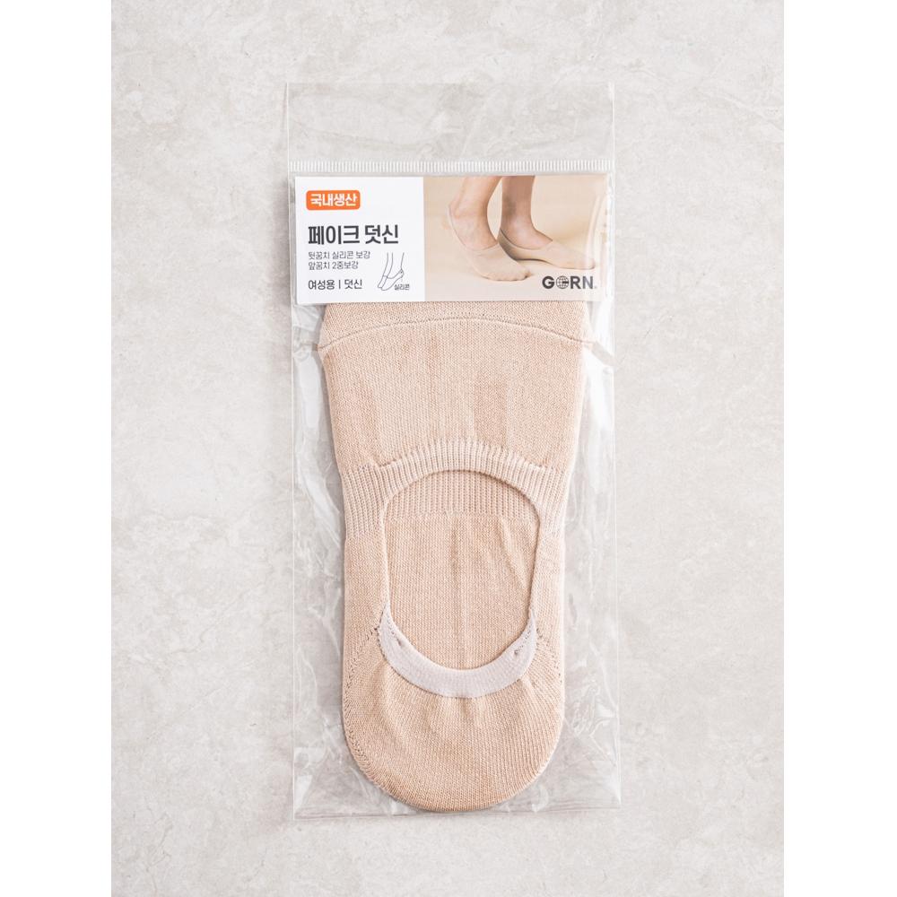 DAISO GGRN Women's Good Fit Fake Socks are designed to feel as if you're not wearing socks at all. These comfortable fake socks eliminate worries about slipping during the day. Thanks to the silicone grip on the inside back, the socks stay securely in place, ensuring a neat fit even when you take off your shoes. The dual-reinforced toe keeps your toes covered, preventing them from showing, and the socks are durable enough to withstand long walks. Made in Korea, these socks come in a natural skin tone, making them perfect for any outfit.