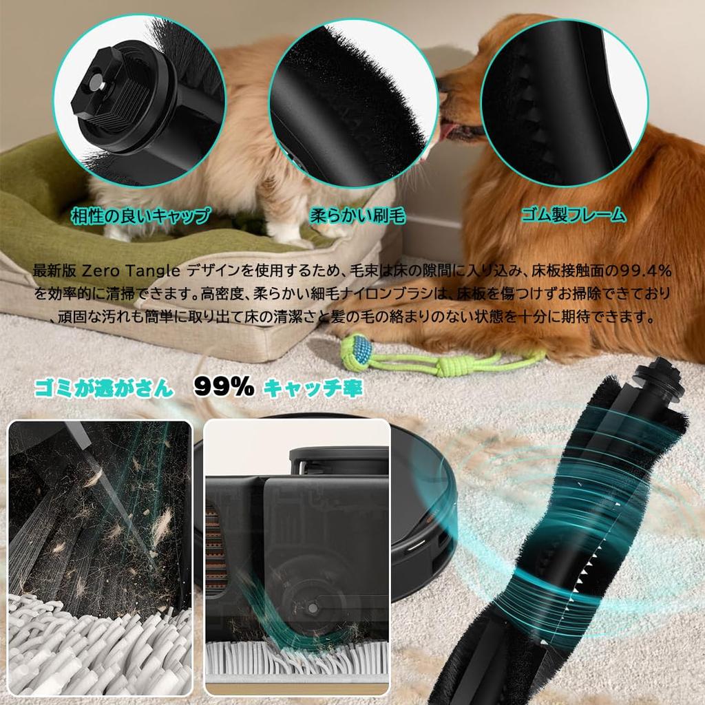 🌸【Main Brush】-Using the latest Zero Tangle design, the bristles can penetrate into the gaps in the floor and efficiently clean 99.4% of the floorboard contact surface. The high-density, soft, fine-bristled nylon brush can be used to clean floorboards without damaging them, and even stubborn dirt can be easily removed, leaving your floors clean and tangled-free.