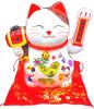 Манящая кошка популярна в японской культуре с древних времен, и то, как кошачья рука приглашает людей, очень мило.. Его ценили как талисман, приносящий счастье, привлекающий других и приносящий удачу в деньгах.. Левая рука этого электрического кота-манящего устройства качается вперед и назад с помощью батареи или USB-кабеля. Давайте привлечем удачу этим движением. Его можно преподнести не только как подарок для защиты от злых духов и сватовства, но и как подарок для привлечения удачи, укрепления семьи и молитвы об успешной сдаче вступительных экзаменов в школу.. Конечно, эта милая мордашка и движения рук успокоят ваше сердце, если поместить ее в угол магазина, на кассу или на стойку регистрации в качестве талисмана, приносящего удачу и процветание вашему бизнесу.. Он также будет эффектно смотреться в качестве украшения в прихожей, гостиной, кабинете и т. д.. На левой руке написано «Шизай Синпо». Это символ, который приносит людям мечты, как символ удачи и везения.. Пожалуйста, используйте этого пухлого электрического манящего кота, который несет ведро с сокровищами на правой руке, желая процветания в бизнесе.