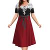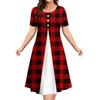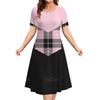 Летние платья для женщин Лоскутные принты Клетчатая одежда Столкновение цветов Вечернее платье Простой короткий рукав пуловер А-силуэт юбка
